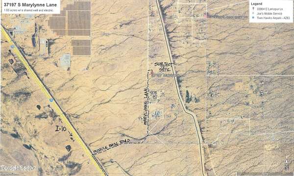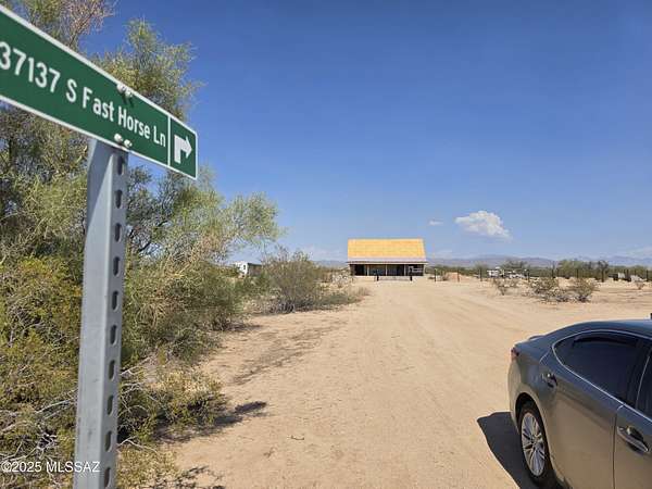 From I-10/MARANA EXIT 236, turn right then left onto service rd. Drive 5 mi. to MISSILE BASE RD> Turn RIGHT to MARYLYNNE LANE. Turn LEFT and drive 1.2 miles north to a street sign reading 37137 S Fast Horse Lane. Turn right here. At the house fence, turn right 100 feet to the FOR SALE sign.