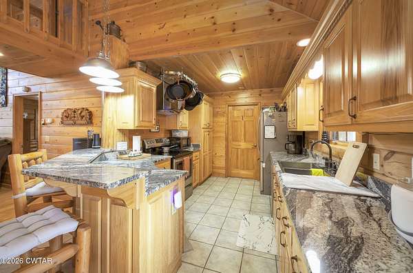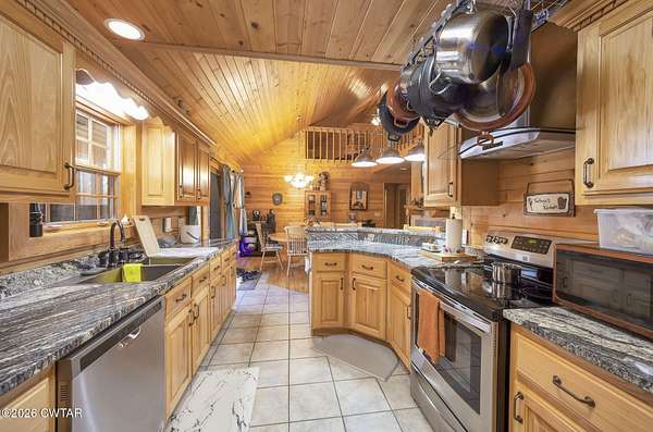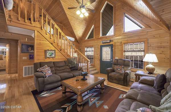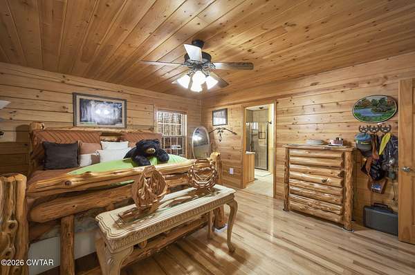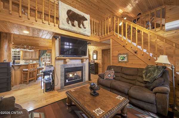 No, this isn't Gatlinburg-this luxurious cabin is located right in the heart of West Tennessee! Tucked away on its own private +/-6.5 acres, this breathtaking property offers a rich, warm atmosphere both inside and out and must be experienced in person to be fully appreciated. The moment you step inside, you're welcomed by solid hickory hardwood flooring throughout the main level, custom hickory cabinetry, and a beautifully updated kitchen featuring new granite countertops and stainless steel appliances. All bathrooms have been recently renovated, adding a modern touch while maintaining the home's rustic charm. Upstairs, a stunning catwalk overlooks the kitchen and living room and leads to a versatile loft space-perfect for a reading nook, home office, gym, or creative retreat. The fully finished basement with poured slab walls and floors offers an additional living area with spacious lounging area, bedroom, bathroom, and office, along with interior access to the massive garage. The property also includes a detached mother-in-law suite complete with its own living room, kitchen, bathroom, and separate garage-ideal for guests or extended family. A full wraparound porch on the main level invites you to soak in the views and truly unwind. Why wait and hope your dream log cabin getaway is available for vacation when you can own your own private slice of paradise? This exceptional estate offers the luxury, privacy, and serenity you've been searching for.