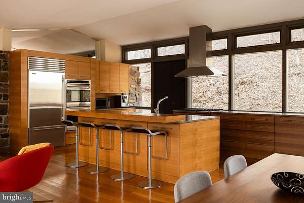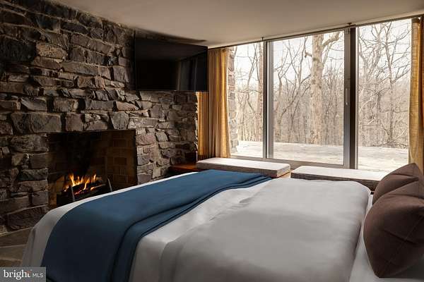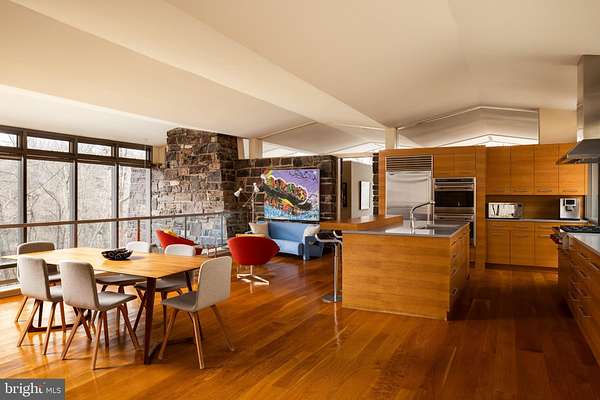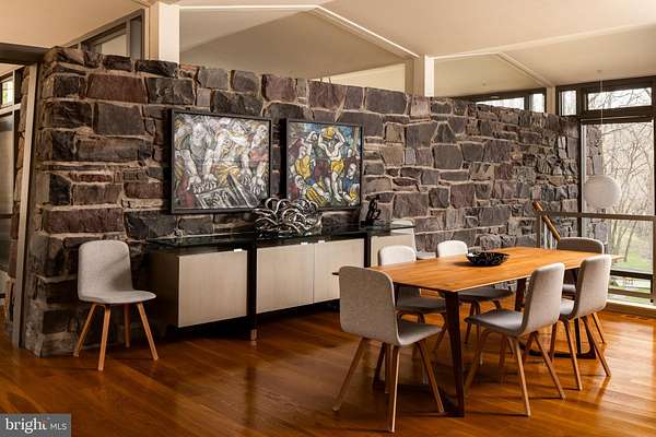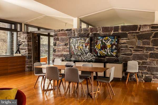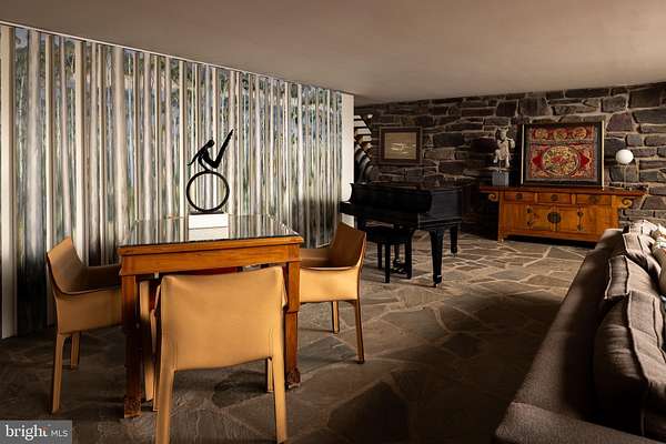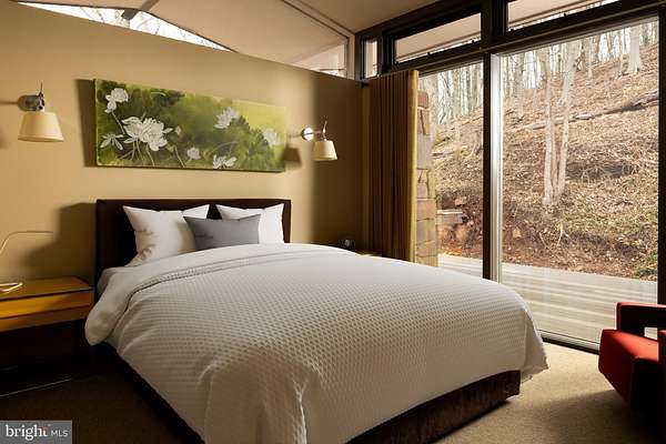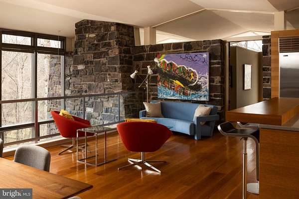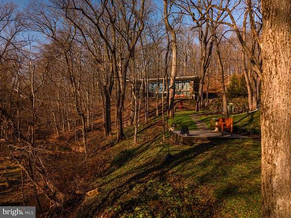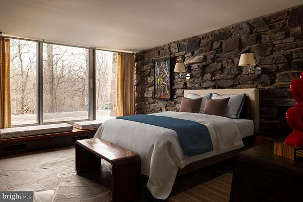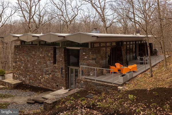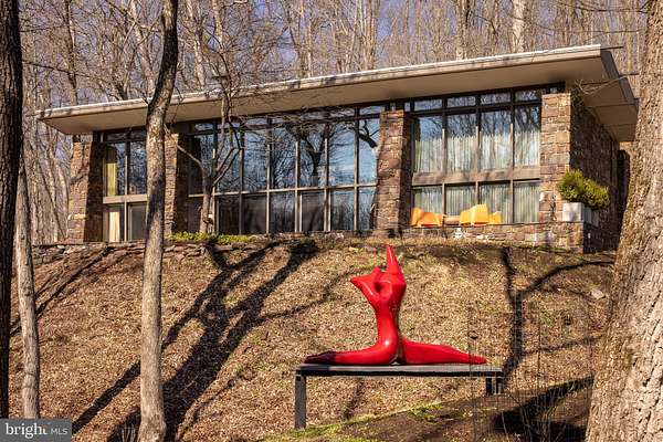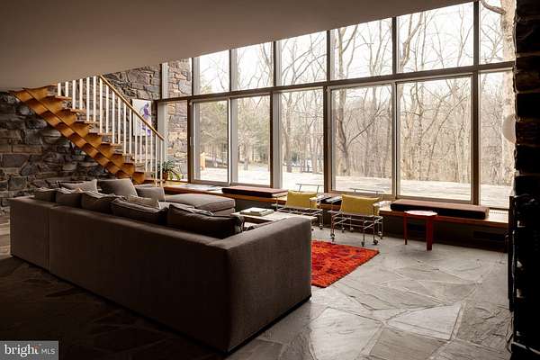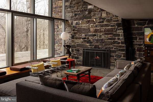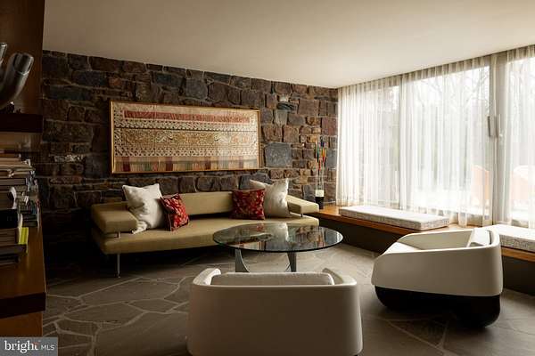 Originally constructed in 1959 and masterfully completed in 2014 following Paul Rudolph's original architectural vision, The Fullam House stands today as a fully realized and enduring work of design, where historic integrity and modern refinement exist in perfect balance. The completion earned the prestigious AIA Bucks County Design Award for Excellence, recognizing the seamless integration of original architecture with thoughtful modern enhancements. Conceived by Paul Rudolph, one of the most celebrated architects of the 20th century and former Chair of Architecture at Yale University, this extraordinary residence represents a rare and deeply personal work created during a pivotal moment in his ascent to international prominence. Known for his bold experimentation, sculptural forms, and leadership in the modernist movement, Rudolph's work helped redefine American architecture in the postwar era. Created for Judge John Fullam and his wife Alice, the home was born from a lifelong friendship that began during their years at Harvard. This was not a speculative project, but a deeply personal collaboration, where Rudolph was given creative freedom to explore new architectural ideas beyond his well-known Florida works. At the request of the Fullam family, the home was intentionally never published during Rudolph's lifetime, remaining an unpublished architectural work thoughtfully situated within the Bucks County landscape for decades. This allowed Rudolph to experiment with evolving concepts, including the interplay of mass and void, sculptural geometry, and environmental responsiveness, resulting in a design both ahead of its time and deeply connected to its surroundings. Set on over 26 private acres, the property is seamlessly integrated into its natural environment, nestled into the hillside and overlooking a dramatic ravine. Constructed with Pennsylvania fieldstone, the residence reflects both Rudolph's modernist philosophy and a nod to the local Bucks County vernacular. Architecturally, the home is a study in light, structure, and spatial experience. A central open living pavilion forms the heart of the residence, flanked by private wings, creating a deliberate separation between public and private spaces. Floor-to-ceiling window walls, clerestory glass, and a distinctive floating roofline allow natural light to move dynamically throughout the home while framing uninterrupted views of the surrounding landscape. Rudolph's forward-thinking approach to environmental design is evident throughout. The sculptural roofline is both visually striking and functional, designed to block high summer sun while allowing winter light to penetrate deeply into the home, naturally warming the thick stone walls which then radiate heat into the space. Inside, the residence offers approximately 3,500+ square feet, including 4 bedrooms and 3.5 baths, with living spaces that feel both expansive and intimate. The interplay of stone, glass, and wood creates a tactile richness, while the home's multi-level design provides a unique spatial experience. The 2014 completion faithfully realized Rudolph's original intent while integrating modern systems and efficiencies. Surrounded by complete privacy, yet within close proximity to New Hope, Princeton, and major metropolitan areas, The Fullam House offers a rare convergence of architectural pedigree, historical significance, and modern livability.