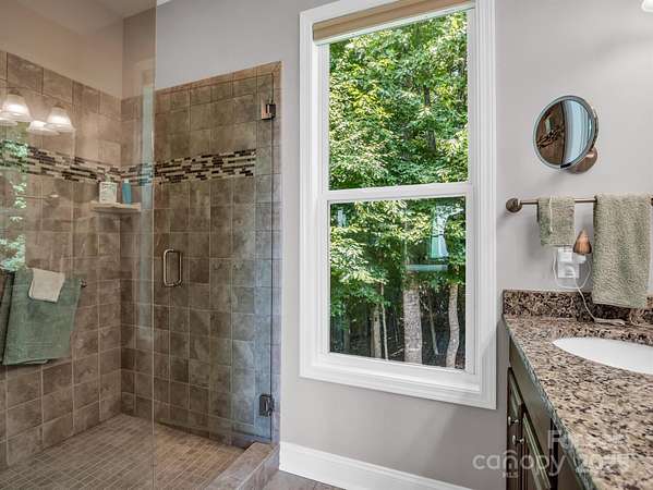 Enjoy spectacular long-range views for miles from this immaculate home on over 10 acres near Weaverville! This property offers a rare combination of one-level living, western views for miles, beautiful sunsets, gentle topography, and utmost privacy. This home offers true one-level living with a main level 2-car garage, vaulted ceilings, a stone fireplace (formerly wood-burning, converted to propane, but could go back to wood-burning), 3 bedrooms (including the primary suite), 2 bathrooms, laundry room, and a deck facing the view. Part of the deck is a screened porch. The walkout basement has a finished storage room that could also be an office, plus a finished shop. The massive unfinished space has more shop space (with indoor and outdoor access) and could serve as a hobby room, game room, or a home gym. Or, connect the finished storage room into the unfinished space to create another larger room. Behind the house is a fenced area for pets. The "Hundred Acre Wood" community has a recreation easement that traverses the ridgeline (at 3200-3300 feet elevation) and is ideal for hiking, dog-walking, and trail running! Access to this trail is at the beginning of the driveway and also at the top of this lot where an old logging road on the property connects with the recreation easement. This home has been pre-inspected and is move-in ready. 4WD/AWD is highly recommended on Gentian Trail. The gravel road is about an 8 minute drive and is in phenomenal condition, but there are a couple of spots that require AWD to avoid spinning. New well pump installed in 2025.