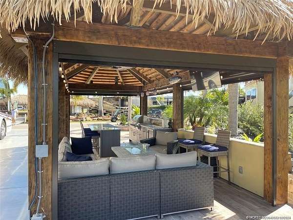 Discover the epitome of resort living on this expansive 70-foot frontage lot boasting a spacious 3654 square feet. Nestled against the picturesque backdrop of the golf course, revel in breathtaking views of the rolling hills and experience some of the most stunning sunsets the resort has to offer. Enjoy the convenience of separate parking, providing ample space for your vehicles, golf cart, and visiting guests. The meticulously crafted landscaping walls and planting beds create an enchanting oasis for gardening enthusiasts. Step into luxury with the newly constructed tiki adorned with 20-year roof fronds, complemented by decorative burnt poles, setting the stage for unparalleled outdoor entertainment. The galley-style kitchen and serving area are ideal for culinary endeavors, while electric screens add an element of convenience and comfort. Offered fully furnished, this property is a sought-after gem in the resort's rental program, promising both relaxation and investment potential.