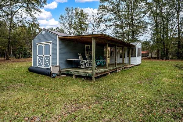Unique property currently used as a small fish camp with endless recreational or development potential. A tiny home-style outbuilding offers sleeping area, kitchenette, and covered porch overlooking a stocked pond--perfect for outdoor enthusiasts. Property includes electric, well, and septic. Extras feature a screened building by the pond, double carport with storage, and a covered three-tier shed. Just 10 minutes to town and 45 minutes to Charleston or Beaufort, this retreat blends natural beauty with accessibility. Whether kept as a fish camp or developed into a permanent residence, it offers versatility and opportunity.