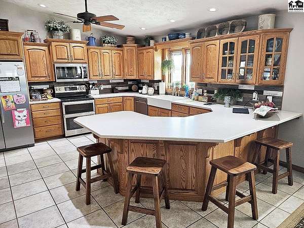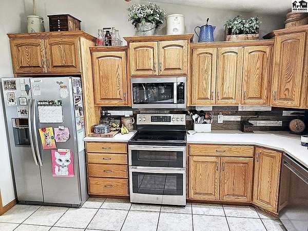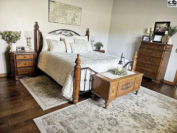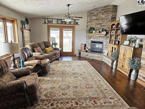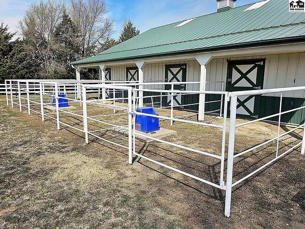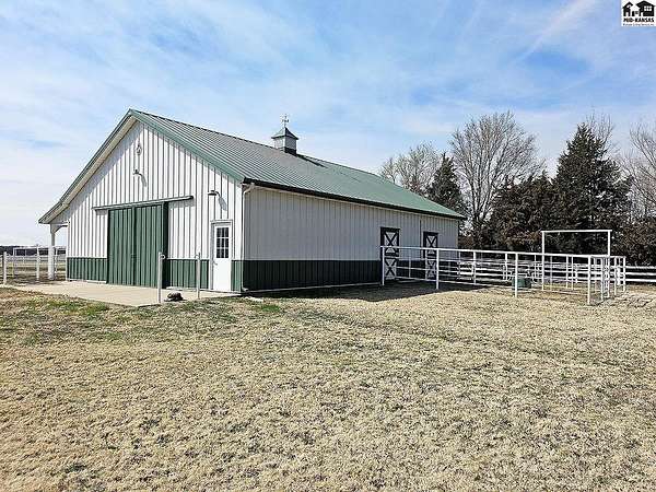 Est $3,401/moYou're going to LOVE the views from the wrap-around porch on this beautiful country home just off the blacktop! Quality Goertzen-built home with 2x6 exterior walls. Open floor plan with spacious kitchen, dining & living area. Large master suite with whirlpool tub & walk-in closet. Second bedroom (office) and hall bath. Main floor laundry/mudroom with sink & storage. Full finished basement features two more bedrooms with egress windows, a third bathroom and a huge family room area. Two car attached garage plus a 30x40 shop complete with concrete floor, electric, heat and 220 outlets. Horse barn is 36x48 with 6 stalls, insulated tack room, electric, water and pipe corrals.