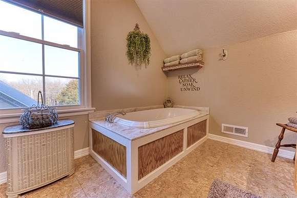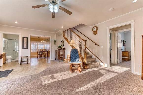 This stunning custom home with Highway Frontage is a dream come true for those looking for peace and tranquility on their own piece of land. Situated on 11 acres, this property offers the perfect blend of country living with modern amenities. The house features 4 bedrooms and 3 full bathrooms, as well as a spacious mudroom that connects the house to the garage.