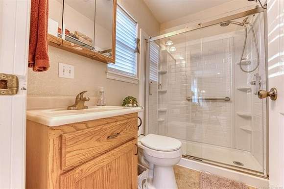 The newly installed metal roof adds a touch of elegance to the home, while the two-car garage with electric openers and sink provides convenience for any homeowner. Above the garage, a finished apartment with a separate entrance offers additional living space, complete with a bedroom, bathroom, and kitchenette.