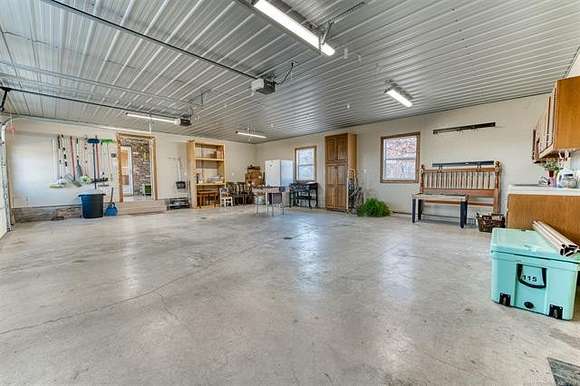 Step outside onto the 12x32 back porch and take in the breathtaking views of the surrounding landscape. The property also includes a 40x40 insulated shop with 12' side walls, perfect for storing tools or working on projects. A fenced-in pasture with smooth wire is ideal for horses, and RV hookups at the shop make it easy for guests to stay overnight.