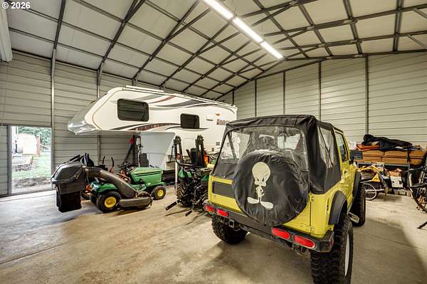 - Covered Patio, Fire Pit, Garden, Poultry Coop, RV Boat Storage, RV Parking, Raised Beds, Second Garage, Sprinkler, Yard