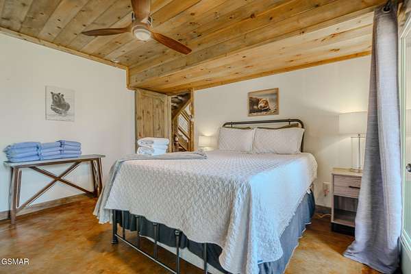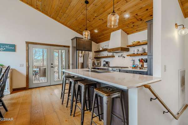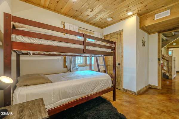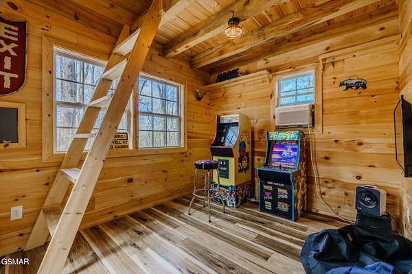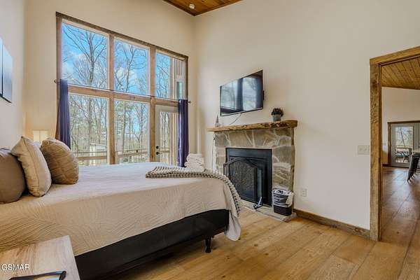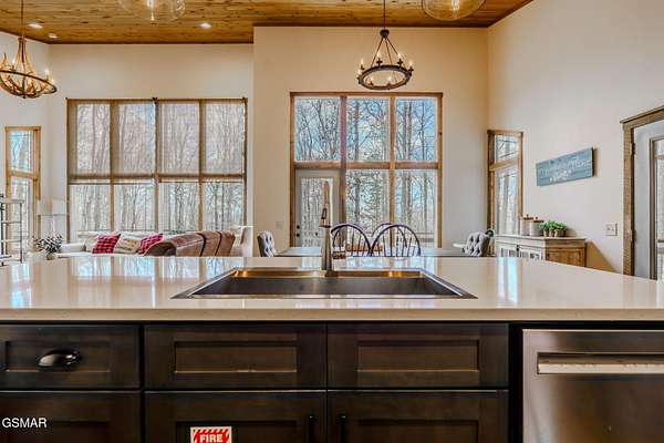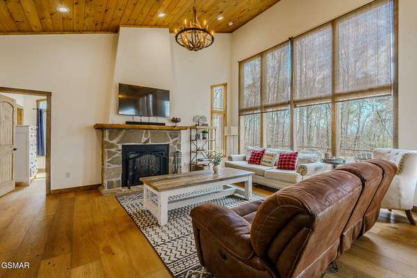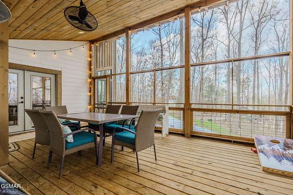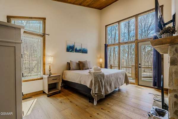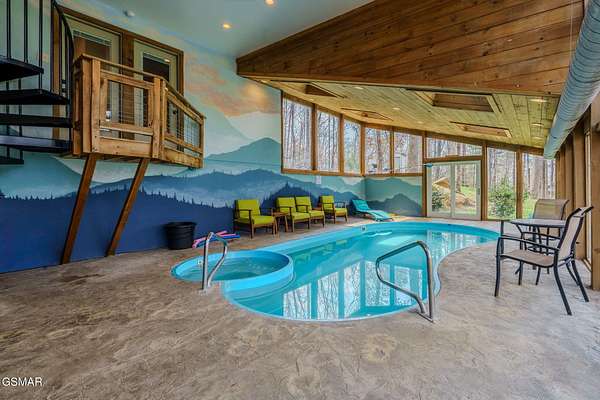 Modern Glass Retreat with Indoor Pool | Wears Valley STR Powerhouse Welcome to a one-of-a-kind modern contemporary ''treehouse'' retreat in the heart of Wears Valley, perfectly positioned on a private 1.5+ acre, tree-studded lot. Designed to stand out in the Smoky Mountains rental market, this luxury cabin is projected by rental agencies to generate $185,000+ in annual income. Striking architecture sets the tone--an exterior wrapped in expansive glass, Hardie board, poplar, and metal, seamlessly blending with its natural surroundings. Inside, craftsmanship takes center stage with custom-cut oak floors, stairways, and tongue-and-groove finishes, all framed by soaring ceilings and walls of glass that bring the outdoors in--offering uninterrupted views of trees, sky, and wildlife. The showstopper! A 13x26 heated indoor pool room designed for year-round enjoyment, featuring: Built-in hot tub Floor-to-ceiling windows Hand-painted mountain mural Wet bar and lounge area Space for games and entertainment The main living area features a dramatic floor-to-ceiling see-through stone fireplace shared between the gathering room and the primary suite, creating a warm, luxurious atmosphere throughout. The primary bedroom also offers direct access to the private deck for a true indoor-outdoor experience. The kitchen is equally impressive with quartz countertops and top-of-the-line appliances, flowing seamlessly into dining and living spaces. Step outside to a screened porch with swings and outdoor dining, where you'll feel immersed in the Smoky Mountain setting. Additional outdoor highlights include a firepit with Adirondack seating, perfect for unforgettable ''S'mores nights.'' Layout Highlights: Main Level: Primary suite, full bath, gathering room, dining area, kitchen, screened porch Lower Level: Game room, 3 additional bedrooms, full bath Bonus: Detached exterior game room with bunk space for kids With sleeping capacity for 14-16 guests, this property is purpose-built for high-performing short-term rental income while still offering the privacy and comfort of a personal mountain escape.