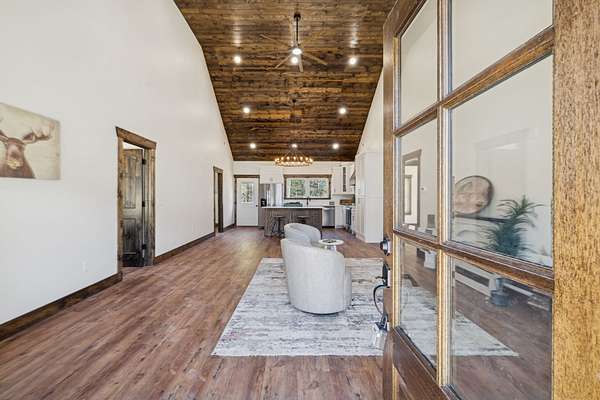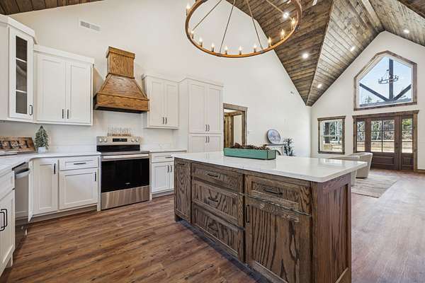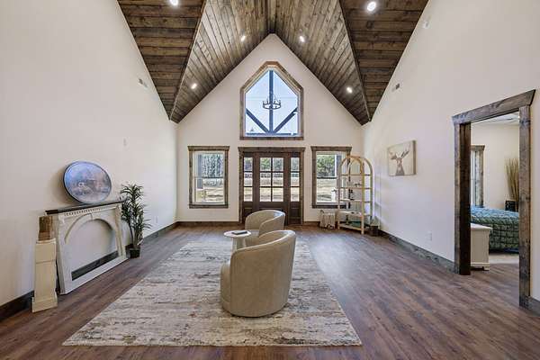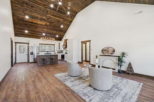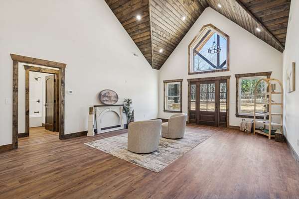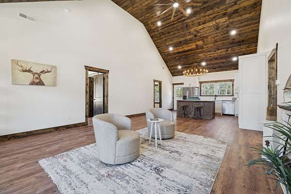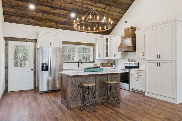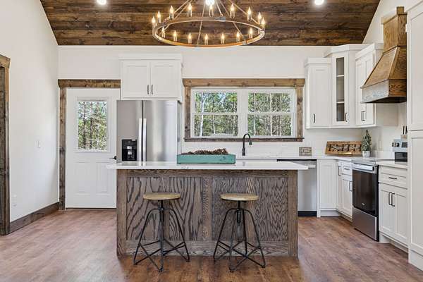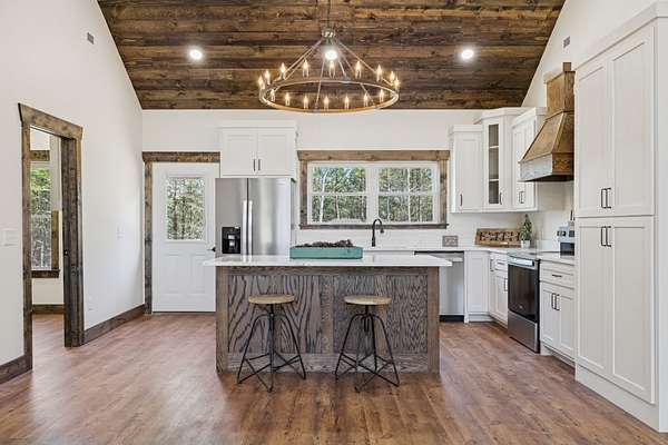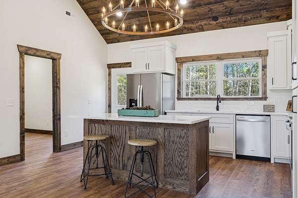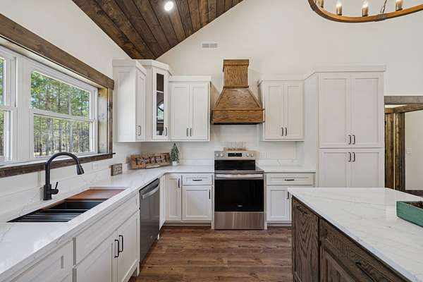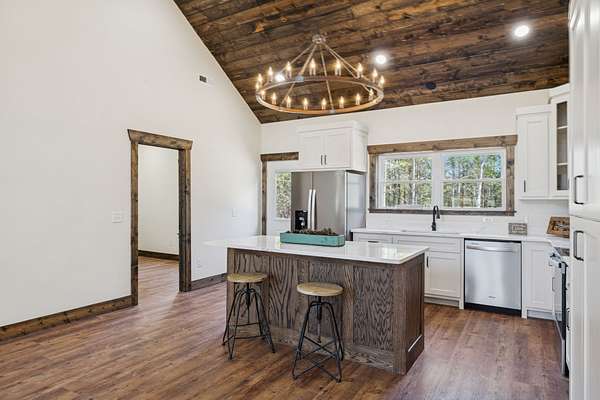 Beautiful new construction home featuring a rock front exterior, vaulted wood ceilings, custom cabinets, and granite countertops. Open-concept layout with durable LVP flooring throughout. The spacious primary suite includes a double vanity, tile shower, and a large walk-in closet. Two additional bedrooms provide flexibility for family, guests, or a home office. This home combines rustic charm with modern design. Builder offers a 1 year builders warranty.