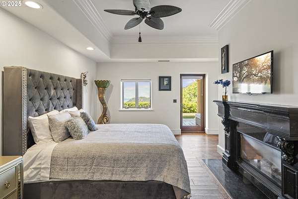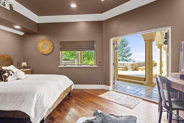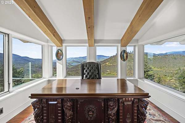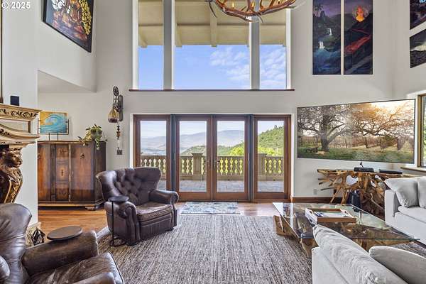 Operated as a successful Airbnb, this 80-acre villa overlooks the valley & Emigrant Lake with privacy and elegance.The 4 en-suite bedrooms captures the stunning views.The chef's kitchen is a showpiece with an oversized island, honed granite, double ovens, prep sink, heated & refrigerated drawers, 3 dishwashers, custom cabinetry and an 8-burner Wolf range.Black Walnut floors throughout, complemented by hand-forged iron railings, marble & tile finishes & 8' solid wood doors.Upstairs is dedicated to the luxurious master suite with a spa-inspired bath, dressing room & an adjacent sitting area framed by a wall of windows. Copper windows, doors & gutters enhance the home's timeless design.Outdoors is equally impressive with an inground pool, expansive paver courtyard, kitchen, restaurant-grade pizza oven & fireplace. Morel highlights incl a hot tub, greenhouse, enclosed raised-bed garden, 1.7 acres of Riesling grapes, tasting studio, 15,000 gal water tank, fruit trees & parking for 10 cars.