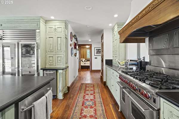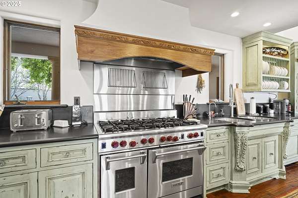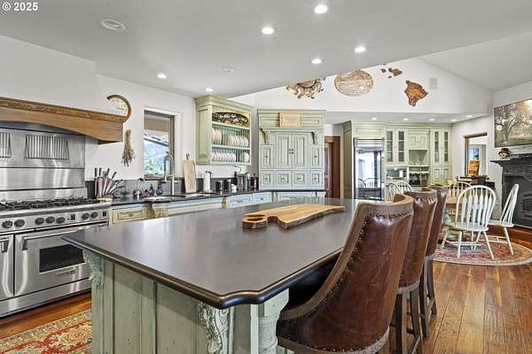 - Builtin Oven, Builtin Range, Builtin Refrigerator, Butlers Pantry, Convection Oven, Cook Island, Cooktop, Dishwasher, Disposal, Double Oven, Granite, Instant Hot Water, Island, Microwave, Pantry, Range Hood, Solid Surface Countertop, Stainless Steel Appliance, Wine Cooler