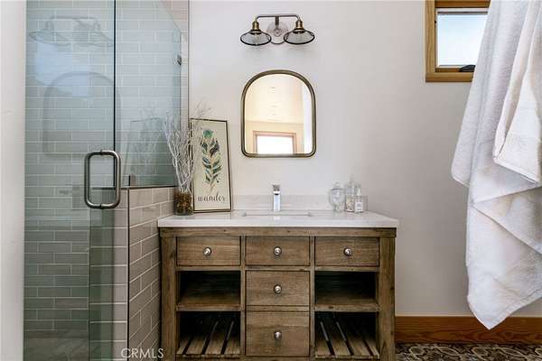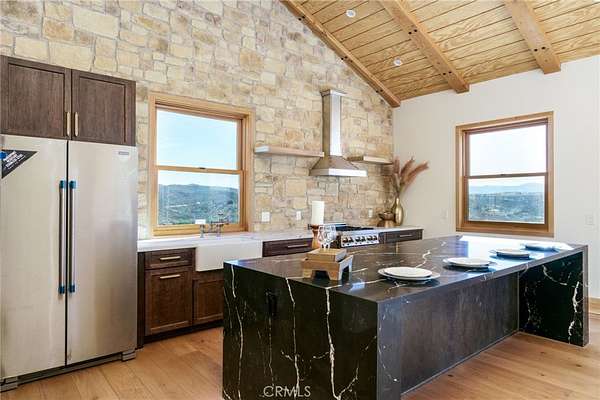 Unique Opportunity! 9+ acres, home on a hill with UNOBSTRUCTED VIEWS! Talk about getting away from it all! Originally designed to be a luxury weekend home, but living here full time would be an absolute dream! This property is a little East of Temecula's Wine Country and you will feel like you are totally away from the hustle and bustle. Private and secluded, but not too far from town. This home is stunning and can be expanded on. Stone work is gorgeous and the finishes inside the home feel like luxury. There is 1 bedroom and a small mini loft area that provides for a sleeping area with room for a full sized mattress or an elevated space to hide out and read or just relax. Custom tile shower with glass door. Stunning tile floors in the bathroom and laundry, which is in its own dedicated room. The kitchen is beautiful with lots of cabinet storage and has a spacious pantry. Upgraded countertops with a waterfall finish on the kitchen island. Farmhouse sink, 6 burner stove. Wood windows and sliding glass door. Wood ceiling beams. There are views from every window and from outside, you feel like you're on top of the world. Endless possibilities! Build onto the home, while living comfortably on site! Home is on a well, propane and septic. More than enough space for toys, animals and possibly another dwelling? The land and views are truly breathtaking! Don't miss out on this opportunity!