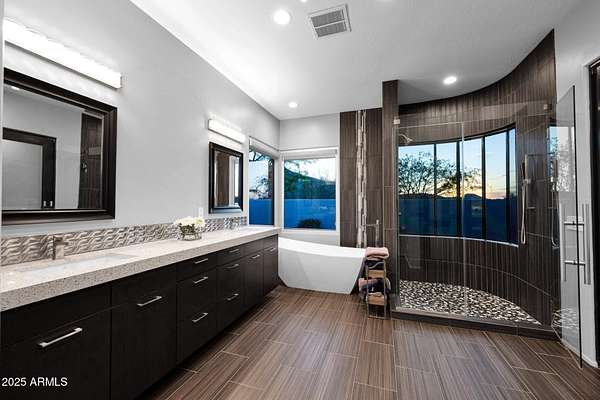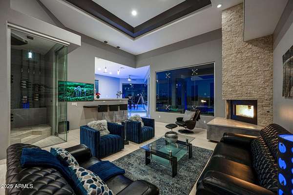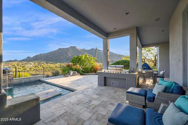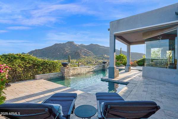 Move in and start living. This fully furnished, modern luxury home in Carefree combines panoramic Sonoran Desert, up close mountain views, refined contemporary design, and proximity to Arizona's premier golf destinations. Nearby golf is exceptional, with Whisper Rock, Estancia, Desert Forest, Desert Mountain, and Troon all nearby, along with convenient proximity to the WM Phoenix Open at TPC Scottsdale, placing world-class courses and tournament energy within easy reach. Designed and updated as a true turnkey residence, the home offers a light-filled open floor plan with clean architectural lines and intentional finishes throughout. Four spacious en-suite bedrooms function as private retreats, each offering comfort, quiet, and flexibility for guests or extended stays. The chef-level kitchen features Sub-Zero and Wolf appliances and flows effortlessly into the main living spaces, making it ideal for both casual mornings and entertaining after a day on the course. A state-of-the-art home theater delivers a cinematic experience for watching major tournaments, hosting game nights, or enjoying late-night movies. Outdoor living is resort-inspired, anchored by a sleek pool, generous patio areas, and expansive desert vistas that capture Carefree's natural beauty, impressive Sunsets and City Lights. The property is within walking distance of the Town of Carefree, offering rare pedestrian access to dining, coffee, boutique shopping, and local events while maintaining privacy and serenity. A notable highlight is the dual oversized garage configuration with parking for up to seven vehicles, including one fully climate-controlled garage, ideal for car collectors, golf equipment, storage, or a personal workshop. This is a rare opportunity to own a modern luxury home in Carefree that delivers turnkey convenience, elite golf proximity, thoughtful design, and an easy, elevated Arizona lifestyle.