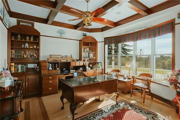 Welcome to 3723 Foothill Blvd, Oroville - a breathtaking 7,800 sq ft. estate known as Olive Branch Ranch. This extraordinary property, crafted with meticulous care by John Starr of Better Builders, blends unparalleled luxury with agricultural excellence. Designed to create a place where generations of family would gather, the home's elegant craftsmanship and thoughtful design are evident in every detail. The home is highlighted by a grand chef's kitchen that flows seamlessly into the family room. The formal living and dining rooms are spacious enough for large gatherings, offering the perfect setting for family holidays and entertaining guests. Upstairs, the primary suite offers panoramic views of the foothills, Table Mountain, the Oroville "O", and the Coastal Range, providing a serene and private sanctuary. The suite also features an expansive walk-in closet, custom-built-ins, and a spa-inspired en-suite bathroom designed for ultimate relaxation. Three additional bedrooms, a bonus room perfect for a hobby space or homeschool area, and a full guest bathroom complete the upper level. The lower level serves as a separate guest quarters with a game room, kitchenette, and direct access to the Olympic-size pool. This 20.73-acre estate features a working olive ranch, with adjacent 22-acre 125-year-old Olive Groves producing premium olive oils. The 3,200 sq ft. tasting room includes a processing facility, storefront, reception area, and serving counter, offering an ideal opportunity for a wedding venue, bed & breakfast, or agritourism retreat. The estate also boasts a detached workshop, fenced garden, basketball court, and a 1.5-acre pond. One of the estate's most unique features is the fully restored Rio Grande train caboose, transformed into a charming guest retreat. Perched at the edge of the property, overlooking the pond and scenic landscaping, the caboose is equipped with a wood stove, air conditioning, a full bathroom, and a private deck and working railroad lights - It's the ideal spot for guests to enjoy serene privacy while experiencing the beauty of this incredible property. The property is fully fenced with cross-fencing for livestock, a chicken coop with exterior egg access, multiple storage buildings, and an equipment shed. A perfect blend of elegance, history, and opportunity, Olive Branch Ranch is a once-in-a-lifetime chance to own one of Northern California's most extraordinary estates.