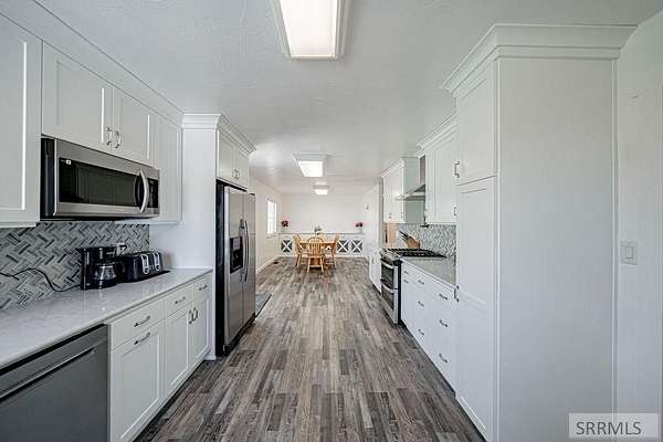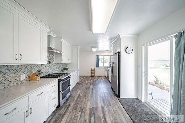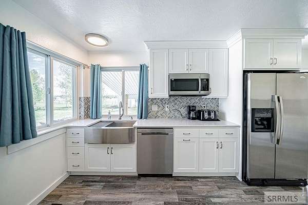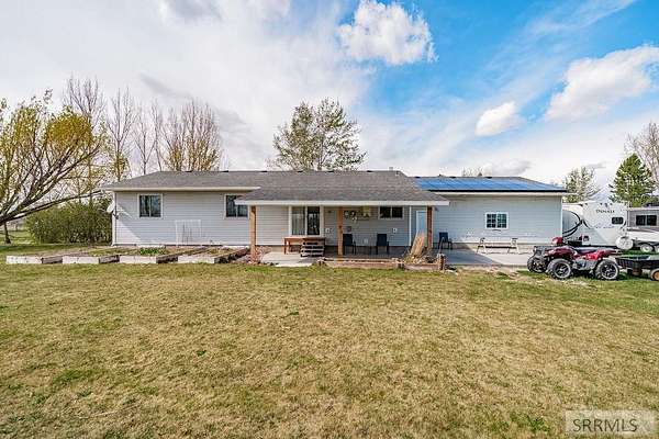 Set between Ucon and Rigby, this exceptional country property offers the perfect blend of rural charm and modern comfort on 5 usable acres. Livestock is permitted, and the fully fenced pasture-complete with a corral-makes it ideal for horses or hobby farming. The outdoor space is thoughtfully designed, featuring a cozy fire pit area for evenings under the stars, a productive orchard, a garden area, and a spacious patio perfect for entertaining. A storage shed adds extra functionality, while installed solar panels help improve energy efficiency. Inside, the home showcases durable and stylish LVP flooring throughout, a large dining area suited for gatherings, and a beautifully updated kitchen with modern finishes and conveniences. A dedicated family room set up as a theater room provides the ultimate space for movie nights or relaxing at home. This property offers the peaceful lifestyle of country living with all the amenities you need for comfort and enjoyment.