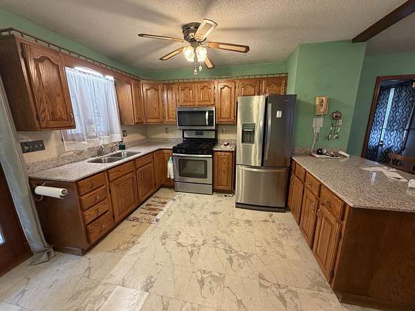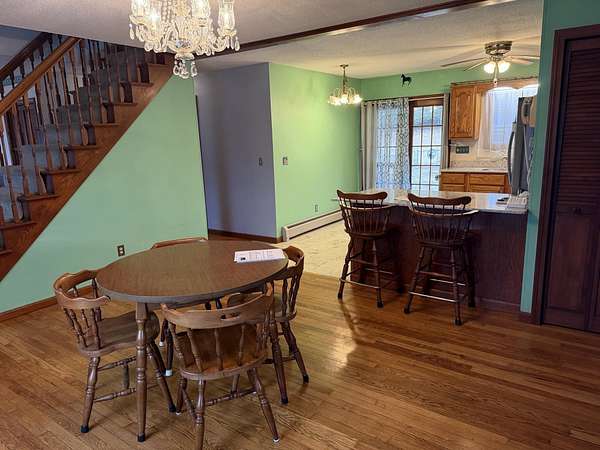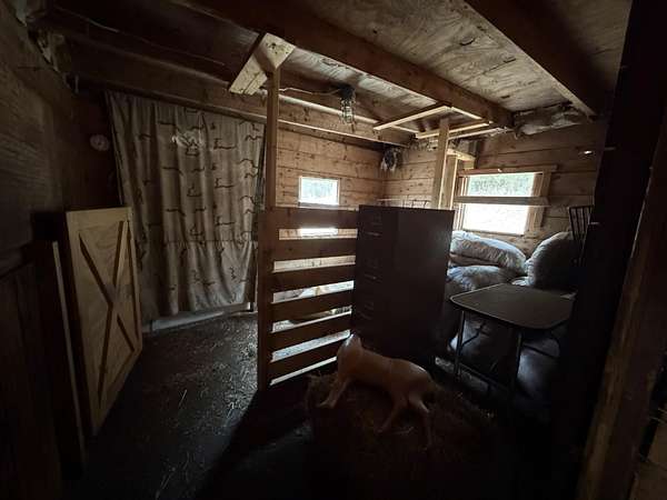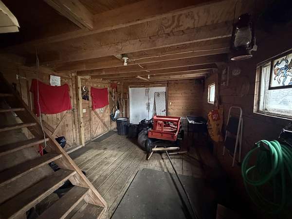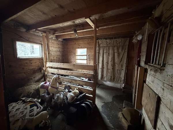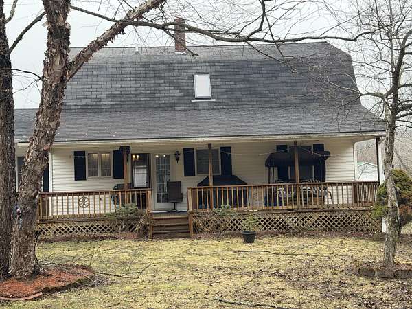 Thoughtfully-designed gambrel on the outskirts of Derby. Was previously a mini horse farm with horse barn. Large meadow up behind the house completely secluded. You enter through a large mud room that also has garage access and back yard access, and laundry. The kitchen/dining area is very spacious spanning the width of the house and opening onto the 34 foot wide covered back porch. Living room, 3/4 bath, and 1 bedroom complete the 1st floor. Upstairs are 2 more bedrooms and a full bath. The full walk-out basement has large windows and would accommodate much more living space. And, 62 acres!!!! Same owners built this well-maintained home in 1990, but now it is time to move one. Road frontage is estimated. Motivated seller.