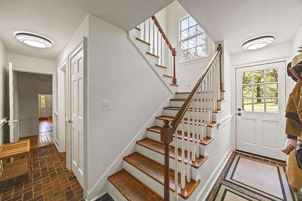 The historic William Lytle Todd House is privately-nestled amidst 32+/- acres along Bowman Mill Road, a National Register Rural Historic District and one of Central Kentucky's most picturesque byways. Constructed ca. 1814 by Todd, a member of the prominent pioneer-era Lexington family, the Federal five-bay, two-story brick home has been remarkably preserved over the course of two centuries. Hallmarks of Federal architecture, such as a large central hall, attractive woodworking, six-panel doors and Flemish bond brickwork are all featured. Perfectly sited atop a knoll and behind mature trees, the home enjoys bucolic views of Cave Creek. Adjoining is a dry-stone walled garden and detached four-car garage with appx. 1,003+/- sq. ft. of space above. The thoughtfully-designed 12-stall barn has a wash-rack, office with a half bath, feed room & ample loft area. An additional three stalls (and feed/tack room) abut the four-car brick garage shedrow-style. Both are centrally-located within easy access to five paddocks and one expansive field. Exceptionally well-located, the farm is in the immediate vicinity of Bluegrass Farm, Calumet Farm, Godolphin at Jonabell, and Shadwell, to name a few. It's also only 2+/- miles from Bluegrass Airport, 2.5+/- miles from Keeneland Race Course, & 2.5+/- miles from Beaumont.