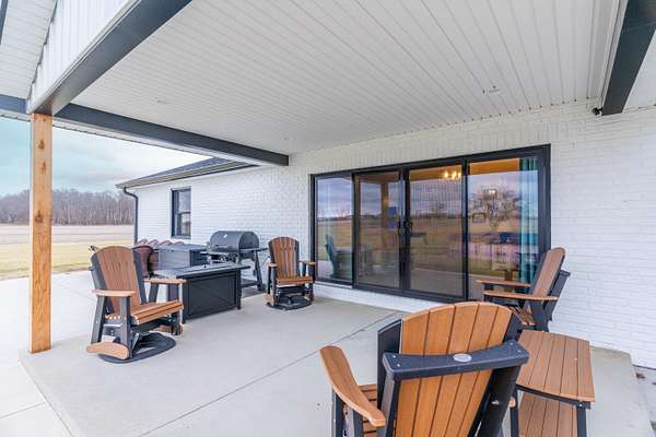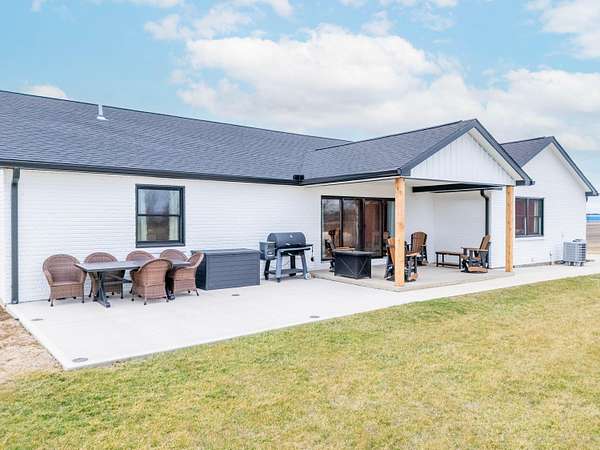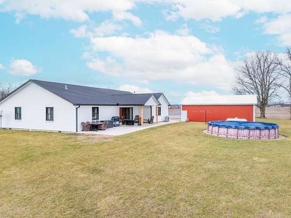 Completely updated brick ranch on nearly 6 acres in the Houston School District! This beautifully maintained 3-bedroom, 2-bath home offers over 2,000 sq ft of living space and sits on almost 6 acres made up of multiple parcels. Built in 1999, the home has been thoughtfully renovated from top to bottom since 2020, blending modern updates with timeless appeal. The exterior showcases whitewashed brick, a new roof, siding, soffit, gutters, and exterior paint (2025), along with a covered front porch and an expansive covered and extended rear patio-perfect for entertaining or relaxing while enjoying the peaceful setting. Sliding French doors open from the main living space to the patio, creating a seamless indoor-outdoor flow. An above-ground pool conveys with the property, featuring a 22-ft round, 52-inch depth, sand filter system-ideal for summer enjoyment. Inside, you'll find a fully remodeled kitchen (2021) with stainless steel appliances, quartz countertops, updated cabinetry and fixtures, and motorized blinds (2025). Both bathrooms have been completely remodeled, including the main bath (2021) and the primary bath (2024). Additional interior improvements include new flooring throughout, updated lighting, freshly painted walls and ceilings, new outlets and switches, added attic insulation, and a whole-house water filtration system with reverse osmosis at the kitchen sink (2021). All windows and the patio door were replaced in 2021 (Renewal by Andersen). A standout feature of the property is the 30x40 pole barn with electric and concrete floor, perfect for storage, hobbies, or equipment. Additional upgrades include a new front door, storm door, garage service door, garage door opener, and security cameras. This rare offering combines acreage, extensive updates, and a prime location just outside of town-providing space, privacy, and convenience all in one. A true move-in-ready property with nothing left to do but enjoy.