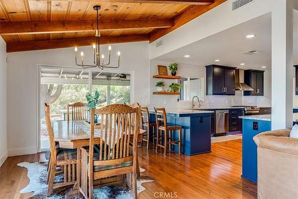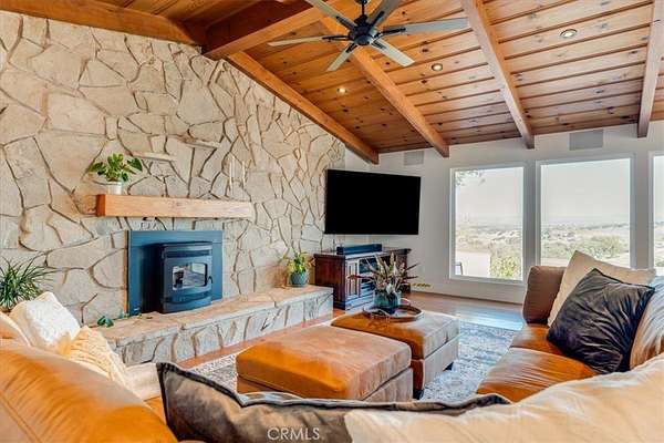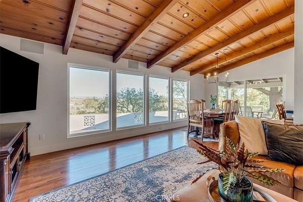 Welcome to 3725 Plymouth Hill! Experience the best of both worlds with a location just outside of city limits- enjoy the spacious, peaceful feel of country living while being mere minutes to the Paso Robles Downtown City Park, wineries, and restaurants! The two-acre parcel is accessed via a custom iron gate and private driveway, offers an abundance of privacy, and is studded with mature oak trees. This Mid-Century Modern home has been completely remodeled to the highest of standards; the interior was stripped down to the studs and meticulously restored while maintaining original charm. The open floor plan consists of three bedrooms and three baths, with two of the bedrooms being en suite. The spacious kitchen offers ample storage, including a walk-in pantry, granite countertops, and color-changing LED under cabinet and toe kick lighting. The stunning primary bath features double sink vanities, quartz counters, and a gorgeous tiled shower that doubles as a steam sauna. Revel in the seemingly endless views of rolling hills and vineyards through the panoramic living room windows or from the hot tub outside. The massive patio provides a generous space for relaxing or entertaining. An attached, single car garage is in addition to a detached, two car garage (both fully finished and insulated) that could also be utilized as a workshop. New roof on the home was installed in 2021. Please take the time to view the photographs to fully appreciate how wonderful this property truly is. Call your agent today to schedule a tour of this incredible property!