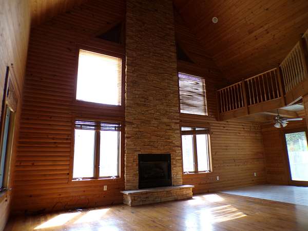 Escape to your own private retreat with this charming 3-bedroom hilltop home nestled on 20 wooded acres. A winding driveway leads to a secluded setting where peace, privacy, and nature surround you. Enjoy breathtaking views from the welcoming front porch, side deck, and private bedroom balcony. Inside, the home features warm wood floors and walls, a stunning interior balcony, cozy gas fireplace, and a spacious kitchen with large pantry. The oversized 3-car garage offers plenty of room for vehicles, storage, or hobbies. If you're looking for a home that feels tucked away and serene, this one is a must-see.