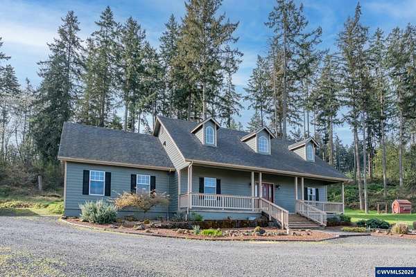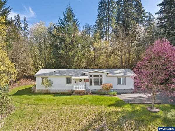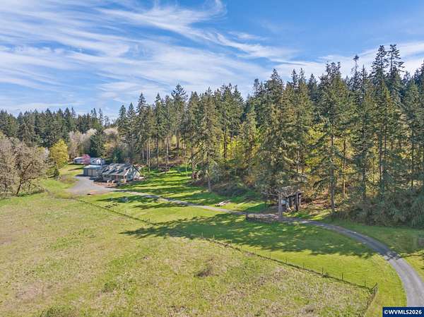Est $4,104/moAccepted Offer with Contingencies. Private 7-acre property in a convenient location with beautiful views and mature trees. This beautiful 3 bed, 2 bath home features a welcoming covered front porch and central AC. Plenty of room for hobbies and storage with several outbuildings. Enjoy space, privacy, and versatility all in one property.