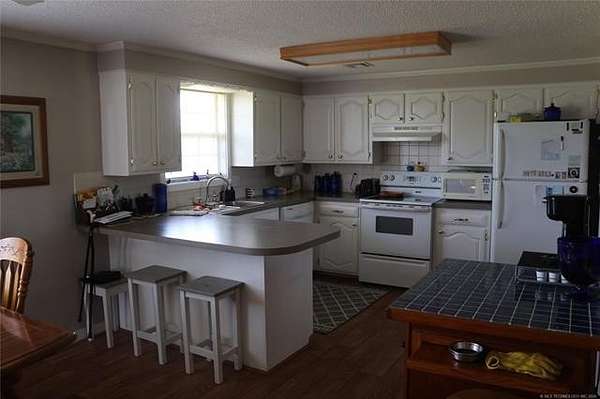 Morris Creek Road House Welcome to your dream property sitting on 40 acres of very nice pastureland with scattered trees, this 3-bedroom, 2-bathroom home is a perfect blend of comfort and country living. The residence has a split floor plan with the master bathroom being handicapped accessible. The Kitchen/dining is open and has a lot of cabinet and storage area. The Living area is very cozy and has a beautiful wood burning fireplace, big picture window and is semi open to the kitchen area. The backyard is chainlink fenced for your animals. The pasture is beautiful property which is all fenced and has large mature trees for livestock shade, lush in Bermuda grass, perfect for grazing livestock or enjoying outdoor activities. There are 2 ponds on the property and used for livestock watering, wildlife watering and fishing. The property also includes a well-maintained barn, offering plenty of storage and space for your farming needs or hobbies. The one thing you will notice is the panorama view of the Oklahoma mountains. They are absolutely stunning at any point on the property. The yard has mature crepe myrtles, wisteria, rose bushes and more. Whether you're sipping your morning coffee on the porch or hosting summer barbecues, you'll love the tranquil ambiance this property provides. Located in an excellent area, this home offers the perfect balance of privacy and accessibility, making it a wonderful place to call home. Don't miss the opportunity to own this stunning piece of land that seamlessly combines comfort, beauty, and functionality, start today envisioning your life on this picturesque 40-acre estate!