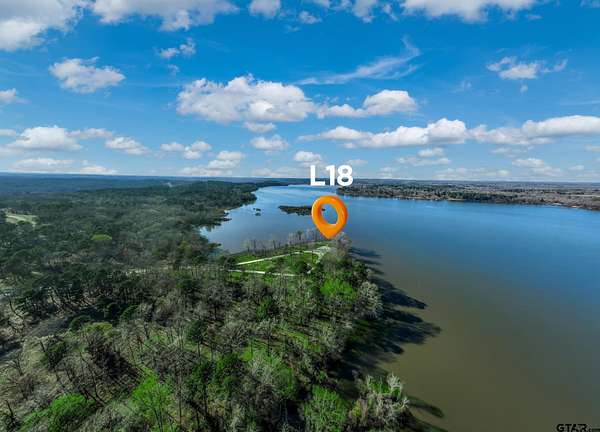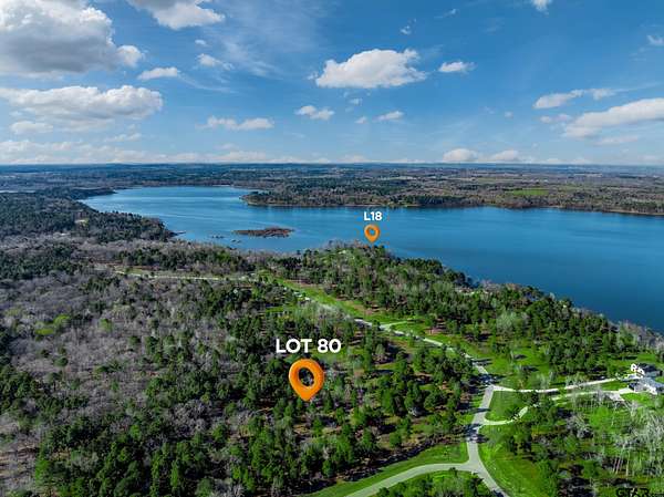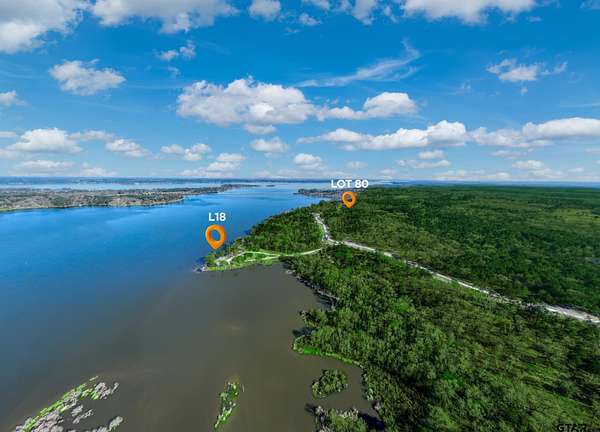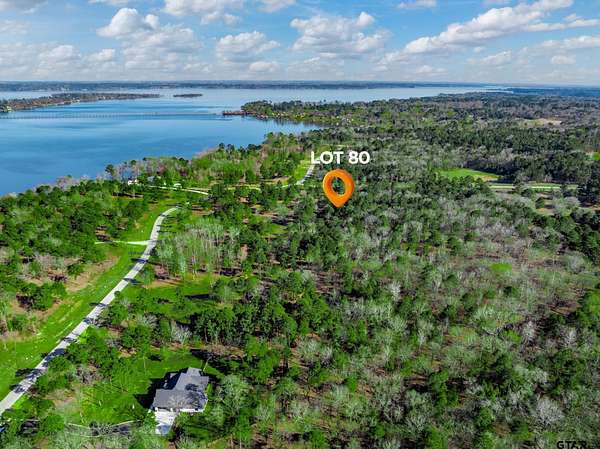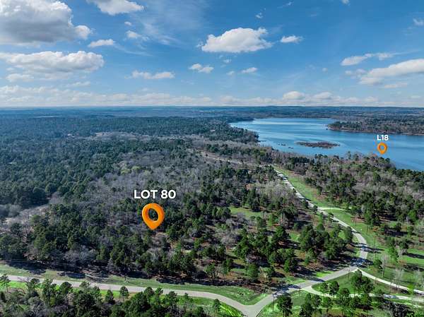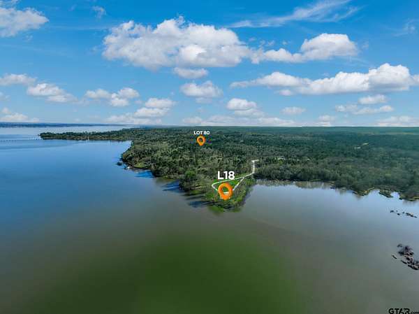 From Tyler, take HWY 155 south. Take a right on 3506. Turn left on 4307. Turn right on Pine Wood Trail. This will take you to the Legacy Shores gate. Pine Wood Trail turns into Pine Wood Way. Once inside the gate, lot 80 with be on your left. To go to L18, take a left at the T and take a right after lot 35 to drive down to the point. There are signs at both lot 80 and lot L18.