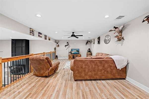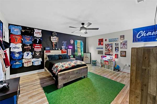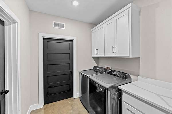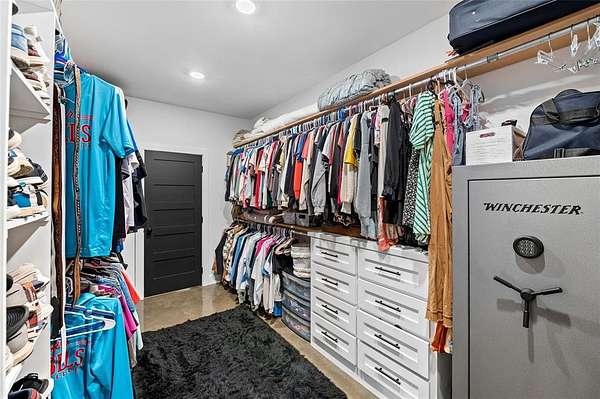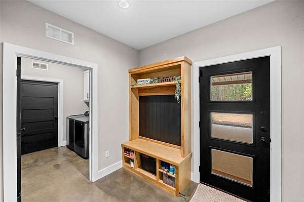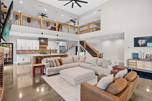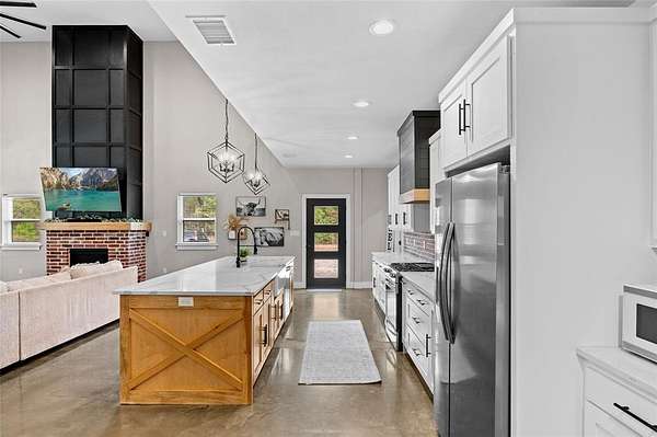 Welcome to this stunning 3,700 sqft, two-story barndo style home sitting on 3 beautiful acres of piney woods. The perfect blend of luxury living and functional space. Inside, you'll find 3 spacious bedrooms including master-sized rooms throughout, 2.5 bathrooms, a second living space and walk-in closets. The open-concept living area features soaring ceilings, polished concrete floors, and a dramatic fireplace wall, perfect for entertaining. The kitchen is equipped with sleek quartz countertops, custom cabinetry, and modern fixtures. Step outside and enjoy the oversized covered patio overlooking your private acreage. This property also includes a 40x45 spray-foamed shop with an indoor batting cage. With the privacy, space, and high-quality craftsmanship this property offers at every turn, it truly is a rare find!