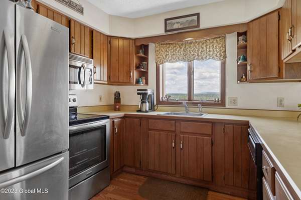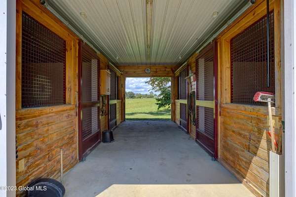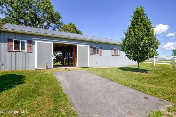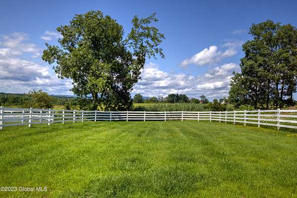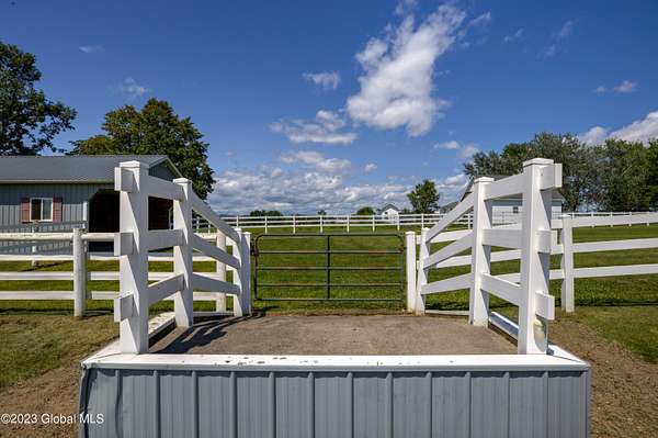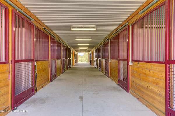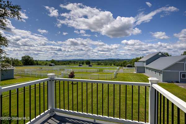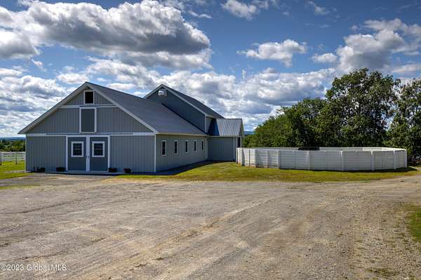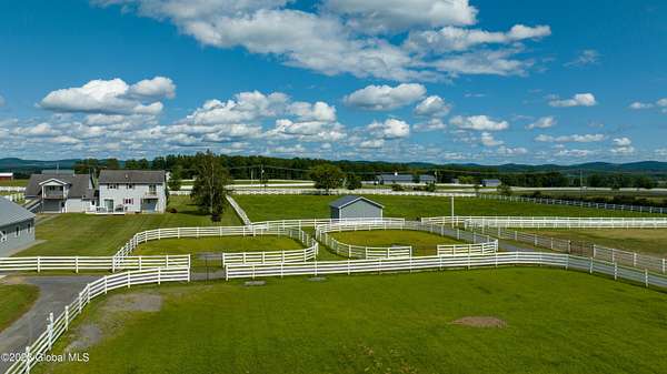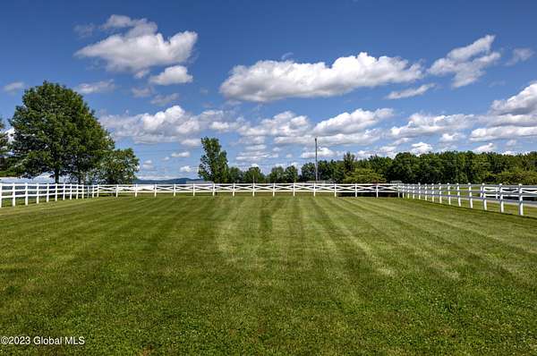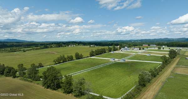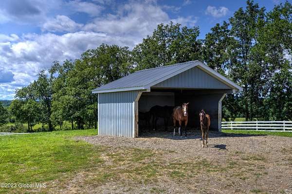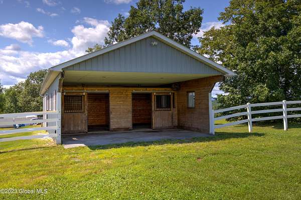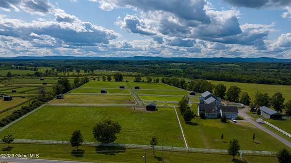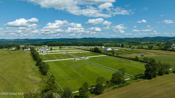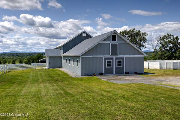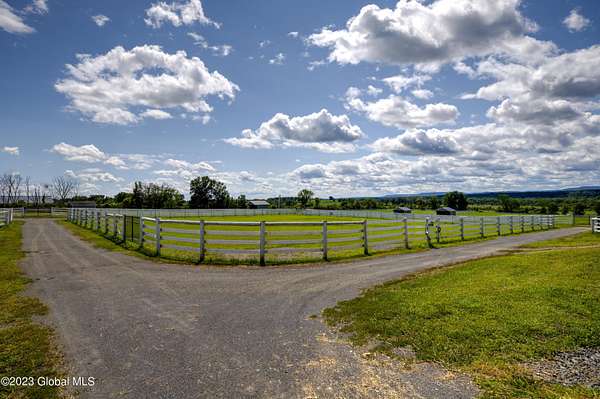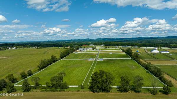 Spectacular equine Farm on 20 acres with breathtaking panoramic views located 30 mins from Saratoga Springs! The property features a 18-stall custom built horse barn with 12'x12' stalls, a 6-stall quarantine barn, fields, and 8 pastures surrounded by 4-rail vinyl fencing that have been meticulously cared for and are in superior condition! Each large paddock has heated, automated waterers and run-in sheds. There is a 16-camera surveillance system and exterior light system to allow owners/employees to check on the horses 'round the clock. The 3-bedroom farmhouse has an open floorplan with great views from every window. An attached 2-bedroom apartment with separate entrance is perfect housing for farm employees or visitors. Additional acreage and barn available.