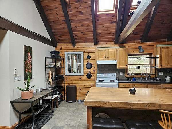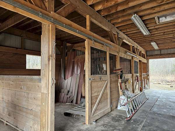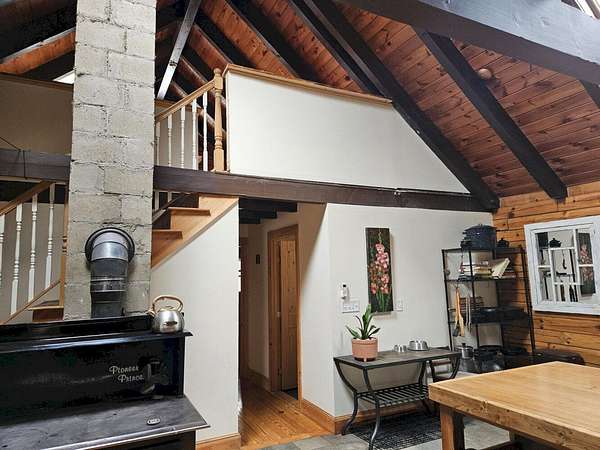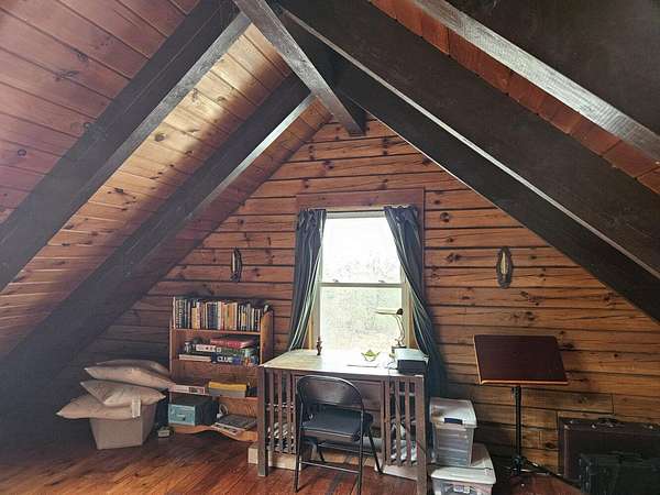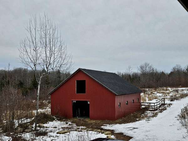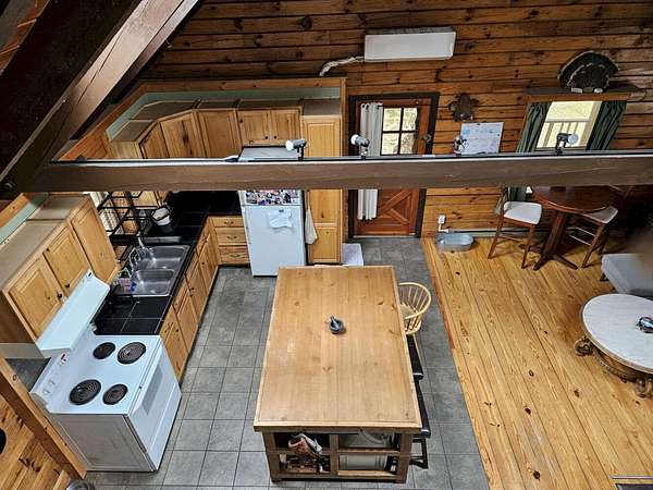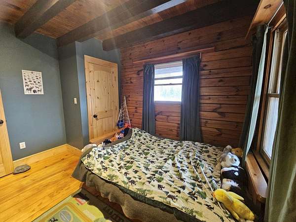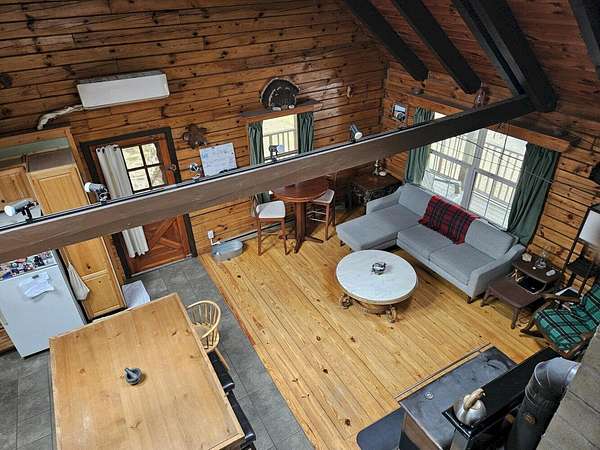 13078 - Escape to your own private retreat with this beautifully 2-bedroom log cabin, perfectly set on 30 acres and surrounded by approx. 1,400 acres of state land - offering unmatched privacy, nature and year round enjoyment. Step inside a warm and inviting interior featuring a stunning cathedral ceiling and open concept living space. The kitchen is equipped with radiant heat flooring, providing comfort and efficiency during every season. The homes logs have been sand blasted, stained and clear coated, giving it a fresh, well maintained look while preserving its rustic charm. Outside, enjoy peaceful morning and relaxing evenings on the wrap around covered porch overlooking your expansive property. A newly completed circular driveway crafted reclaimed stone adds both character & convenience. This property us thoughtfully equipped with major upgrades, including improved drainage around the home. A water line runs to the barn & there is a generator hookup for peace of mind. Optional fencing in barn area, ideal for animals or hobby farming. Whether you're looking for a future residence, a weekly getaway or a special retreat, this is a must see. Huge parcels of land are getting harder to find!