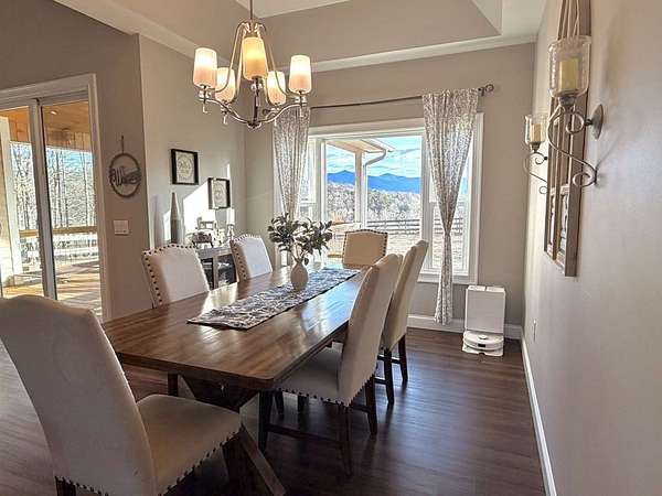 Built in 2017, this thoughtfully designed home is located in an established and desirable Young Harris neighborhood on 1.71 acres across two lots, offering privacy and future flexibility. The additional lot provides added privacy and long-term investment potential. The open-concept floor plan features energy-efficient foam insulation throughout and an oversized garage. The entry and living room showcase cathedral ceilings that enhance light and space, while tray ceilings in the dining room and primary suite add architectural detail. The kitchen offers granite countertops, abundant cabinetry, and an extra-large pantry. A laundry room includes organized storage and hanging space. An expansive covered back porch is ideal for outdoor living and entertaining. The fenced backyard provides space for pets and play. The primary suite features a spa-inspired bathroom. Scenic views, modern efficiency, and convenient access make this an exceptional mountain property.