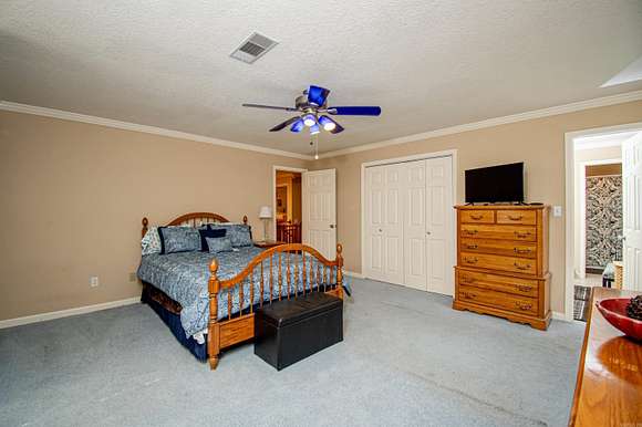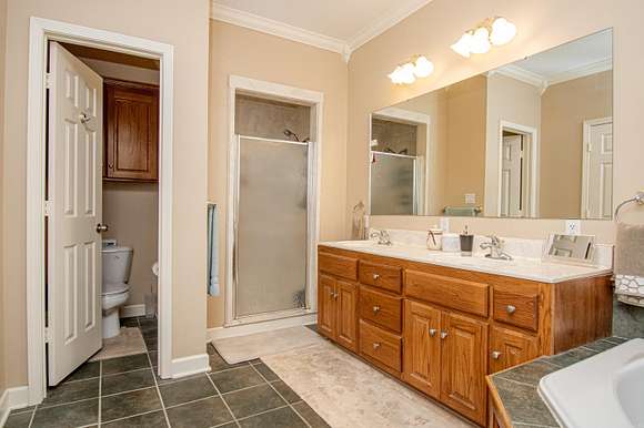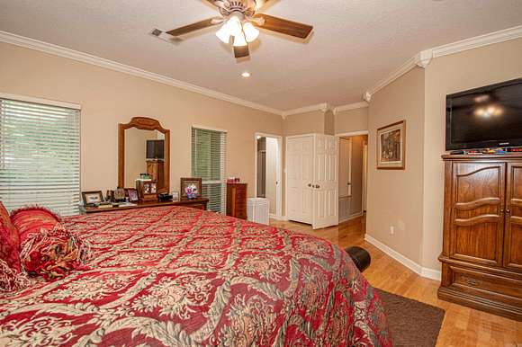 Step into Southern elegance at its finest! Nestled on a picturesque 2-acre corner lot, 373 Brandon Street looks like it was made for the cover of a Southern Homes magazine. The charm starts with a stunning wraparound front porch, inviting you to sit and take in the peaceful surroundings. Upon entering the foyer, you'll find a formal living room to your left--ideal for hosting guests--and a cozy den straight ahead. The den boasts a beautiful fireplace with double doors leading to a sunroom, perfect for enjoying your morning coffee or relaxing with a book. The spacious eat-in kitchen is a home chef's dream, featuring plenty of storage, a pantry, and room for family gatherings. Adjacent to the kitchen, the dining room is built for hosting large, festive meals. A functional and spacious laundry/mudroom is conveniently located downstairs, offering extra storage and a perfect drop zone for daily essentials. The main level also includes a well-placed half bath and the grand primary suite, a luxurious retreat with two large closets, a soaker tub, and a separate shower. Need a home office or nursery? An adjoining room offers versatile space right off the primary suite.