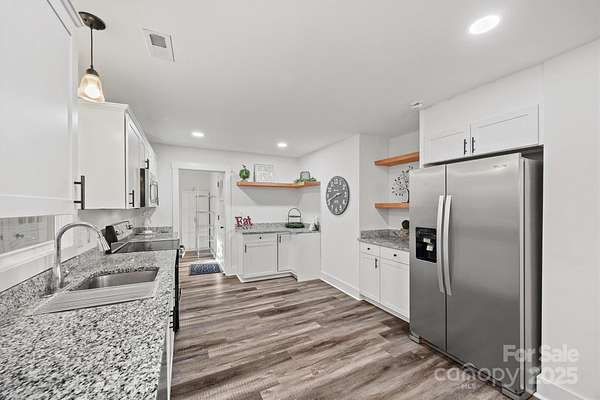 Welcome to your better than new, updated ranch home on 2.2 private acres in the heart of Mint Hill with NO HOA. Tucked away in a serene, wooded setting, this special property offers the perfect blend of space, privacy, and convenience. Inside, the open floor plan features spacious rooms, abundant natural light, and oversized windows that bring the outdoors in. The open kitchen flows easily into the main living areas, making everyday living and entertaining effortless. A dedicated home office/4th bedroom provides flexibility for work or hobbies, while the thoughtfully designed layout offers comfort and functionality throughout. Step outside to enjoy the screened-in porch and expansive multi-level deck overlooking a wooded backyard, complete with a gentle creek and a storage shed-ideal for relaxing, gardening, or outdoor gatherings. The spacious garage adds extra storage and practicality, and the expansive lot offers endless possibilities while still being just minutes from Mint Hill conveniences. Rare, peaceful, and truly one of a kind, this home is a must-see for anyone seeking space, privacy, and character.