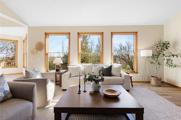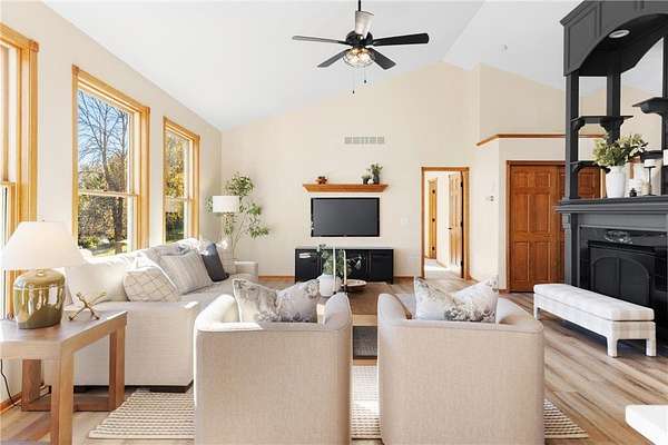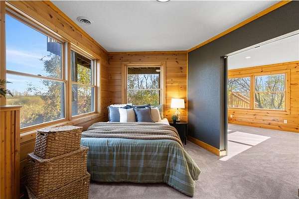 Welcome to your 47 acre private sanctuary. Updated from top to bottom! This custom home offers breathtaking views, and an open layout designed for comfort and versatility. The walkout lower level features a wet bar, and exterior patio that makes this home for entertaining. The main kitchen shines with plenty of cabinetry and counter top space. Step outside to your deck and take in the natural beauty that surrounds you. A 3-car garage and a 30x40 accessory building and 2 Storage sheds (22x14 and 12x10) add exceptional storage or workshop potential. 1,000 plus feet of Lakeshore.