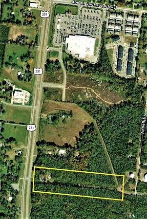 Est $31,222/moSixteen acres of Commercial Potential. Located on Hwy 231 just past Joe B. Jackson Parkway and Wal Mart. Near medical facility, Aldi's, Pep Boys, Wal Mart, etc. are within site of this property. High traffic count with numerous possibilities for commercial use. House and detached garage/workshop are located on the property. Partially cleared with 435 ft. of road frontage. Water line with accessibility runs through the property. Seller to assist in rezoning if needed. First time offered.