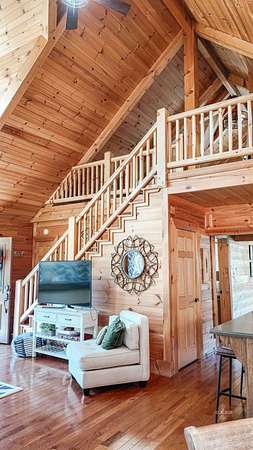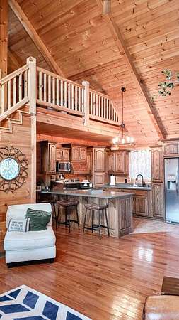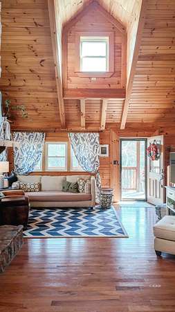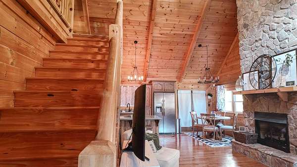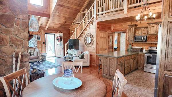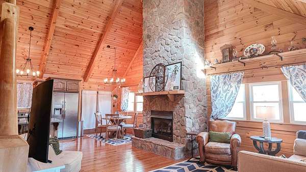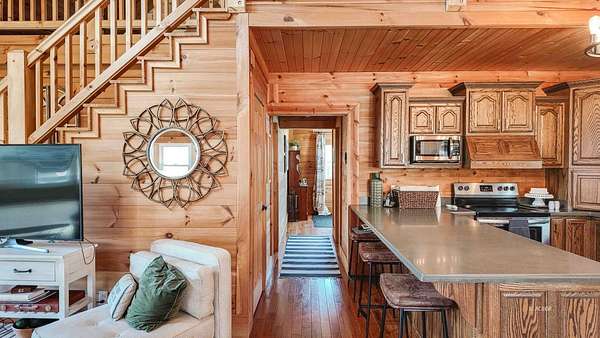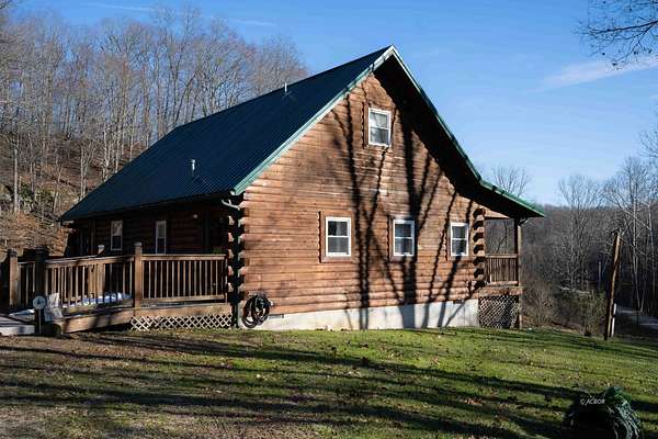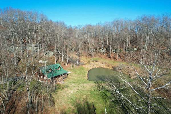 Exceptional 3 -acre retreat featuring wooded acreage, striking rock formations, a natural waterfall, and a stocked pond-delivering a Hocking Hills"style experience with privacy and scale rarely found. This 2012-built log cabin offers 1,330 sq ft with loft, 2 bedrooms, and 2 full baths-designed for flexibility as a luxury getaway or income-producing short-term rental. Currently operating as a short-term rental and equipped with signage and check-in instructions, offering immediate income with expansion potential across additional rental platforms. Offered fully furnished, including window treatments and outdoor furniture, providing a true turnkey opportunity. Furnishings may remain or be removed at buyer's preference. Recent improvements include new appliances, new HVAC, updated plumbing fixtures, new interior lighting, and a newly poured concrete patio with fire pit. A 28x36 pole building with 16' ceilings, two 10' garage doors, and 6" gutters/downspouts provides excellent storage and future-use potential. Privately positioned atop a hill on a quiet, tree-lined road. Conveniently located 7 miles to Pomeroy, 10 miles to Albany, and 20 miles to Athens