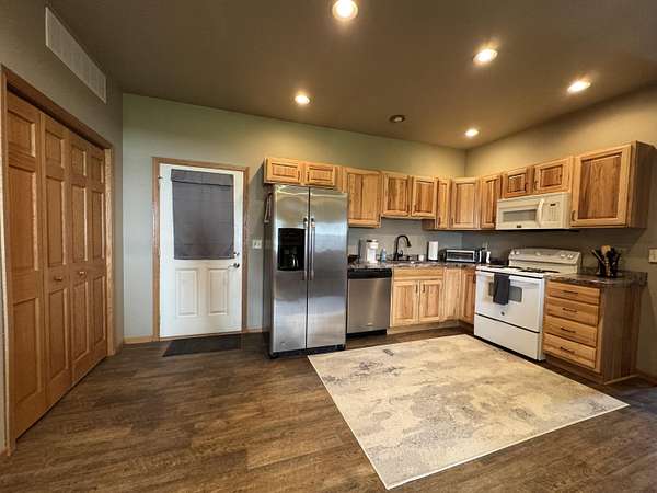 Est $2,374/moThe best of all worlds - a place at the lake with lots of storage! Shop space features in floor heat, 3/4 bath and office along with room to park your vehicles, camper, boat, etc. Living space features 2 bedrooms, living room, kitchen and half bath.