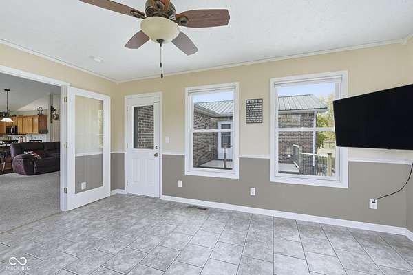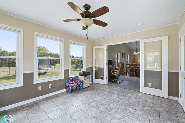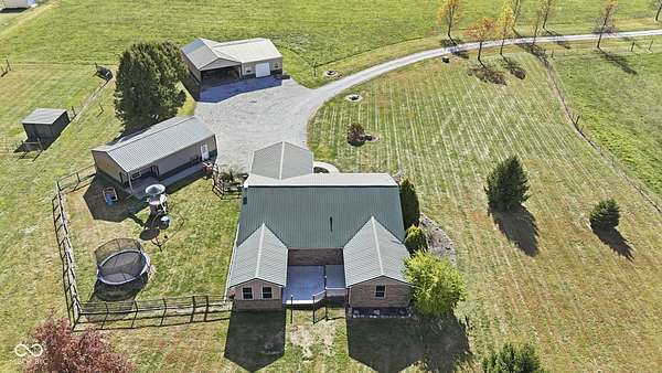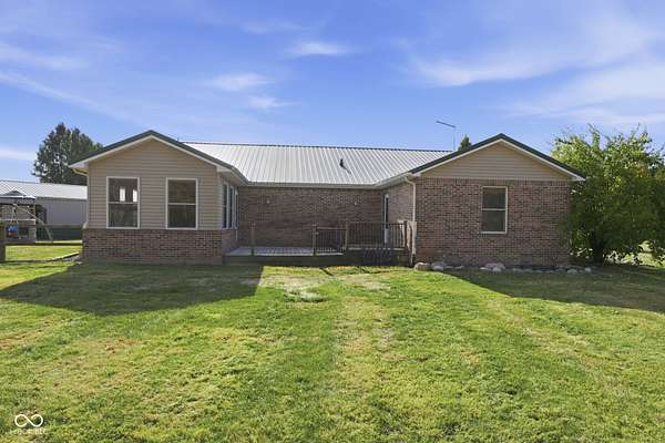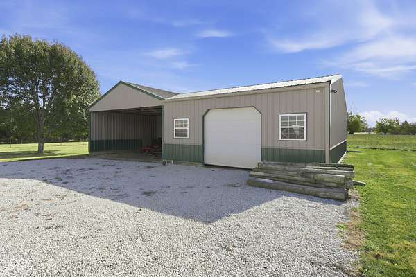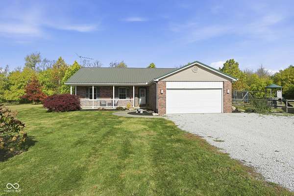 Escape to your own private retreat on 9.65 acres of Indiana countryside! 3-bedroom, 2-bath brick ranch plus two large barns include a 50-amp RV hookup! Over 2,000 square feet of open-concept living space welcomes you with vaulted ceilings, beautiful nailed-down wood floors installed in 2019, a four-seasons room, and a spacious primary suite with direct access to the back deck. The home also features newer stainless steel appliances, gas lines run to the house in 2020, and a new gas HVAC system installed in September 2021 with a transferable 10-year warranty. The gravel drive and expanded parking area were also completed in 2021, adding to the property's functionality and curb appeal. Enjoy quiet mornings on the covered front porch, evenings around the fire pit, and endless outdoor possibilities across the expansive property. The large detached workshop and barn provide excellent space for hobbies, storage, or recreational use, complete with updated lighting, new barn doors added in 2021 and an on-site shooting berm. Located in the desirable Western School District, this is one to check out right away!
