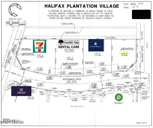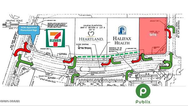 Last Outparcel at Publix anchored center. Site is 1.11 AC. Seller has building plans to share for your Contractor to construct up to 10,600 SF Retail building with parking. This site is perfect for retail including Chiropractic, Physical Therapy, Financial Services, Restaurant, Ice Cream Shop, and many more uses. Bring your development team! Zoned L/L1 (Commercial and Light Industrial) Halifax Plantation Village is a Publix anchored Shopping Center in Ormond Beach. Site has Water, Sewer & Electric available, Off-site storm water retention in place. Located just East of I-95 in Ormond Beach. Rapidly growing trade area includes multiple upscale neighborhoods. Exceptional demographics! Average Household income is over 97,000+ in a 3 mile radius. Located between Daytona Beach & Palm Coast. Solid Traffic Counts of over 65,500 daily travelers using Interstate-95 going North/South.