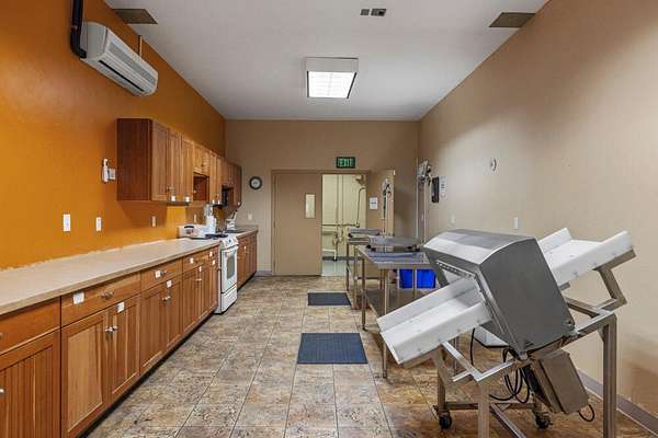Est $5,508/moIndustrial building on 2.13 acres across from Super Wal-Mart on busy Washburn Way corridor. Located in an area of expansion. Includes approx 3000 sq. ft. of office space, kitchen, walk-in refrigeration, large warehouse with loading dock and four roll-up doors and 2.5 bathrooms. 3-phase electric.