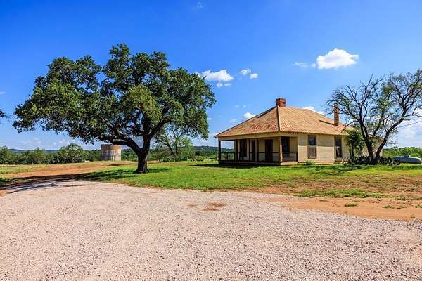 Offering a peaceful escape surrounded by natural beauty & uninterrupted views. Each ranch shares a private 60' wide entrance with 20' wide chip seal road. Established utilities, cleared brush, ponds, & seasonal Goldmine Creek can be found. Enjoy forever-views of Enchanted Rock, Bull Head, & Prairie Mnt to the West, Cedar Mnt, Riley Mnt, & Lucky Mnt to the East. Discover your perfect retreat where a blend of history, nature, & modern amenities harmoniously combine. Nestled amidst the rolling landscape & traversing Goldmine Creek are multiple ponds, large Oak trees, legacy Elm trees, & views overlooking neighboring Sandy Creek. A scenic drive through majestic Oak trees that lead to the original farmhouse, circa 1910. The farmhouse is a canvas awaiting your personal touch, boasting shiplap walls, original wood floors, two inviting fireplaces, distinctive woodwork, two water wells tested at 9.3 gpm & 7.6 gpm, and a nostalgic antique hand pump situated on the back porch. Adding to its allure, a sizable pond sits just below the optimal building site, enhancing the natural beauty and appeal of the land. It's a property that Chip and Joanna Gaines would undoubtedly find irresistible.