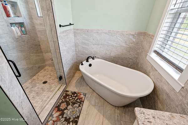 - Blinds/Shades, Ceiling Fan(s), Kitchen Island, Master Downstairs, Pantry, Tray Ceiling(s), Walk-In Closet(s), Walk-In Shower, Whole-Home Generator