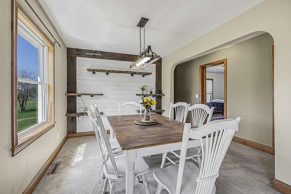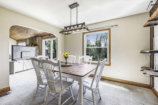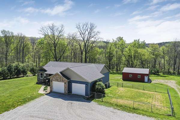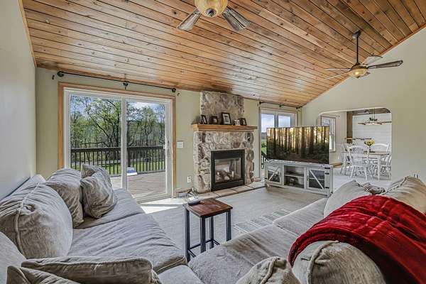 OPEN HOUSE Sunday April 19 1-3 PM Country living at its best. Sit out on your front porch, raised deck in the rear or patio below and enjoy beautiful sunsets and all the peaceful countryside around you. This home was well constructed and has lots of new upgrades recently including new siding and roofs on the house and pole barn, new furnace. Plenty of room outside to do whatever your imagination can come up with sitting on just over 4 acres.Pole barn behind the home has plenty of space to store all your tools, ATV's, lawn equipment, etc. Inside you'll find an open, spacious living room/ kitchen area with a gas fireplace in the living room. 3 bedrooms and 3 full baths with another room that is used as a bedroom, tons of storage space throughout the home. The basement is what man cave dreams are made of. Wood burning stove, kitchenette, pool table and Tiffany light fixture above that come with the home, fully finished and has a walkout sliding door to your concrete patio with built-in fire pit. This home checks all the boxes and is a must see for anyone looking for their own country paradise.