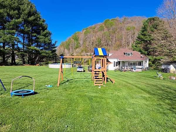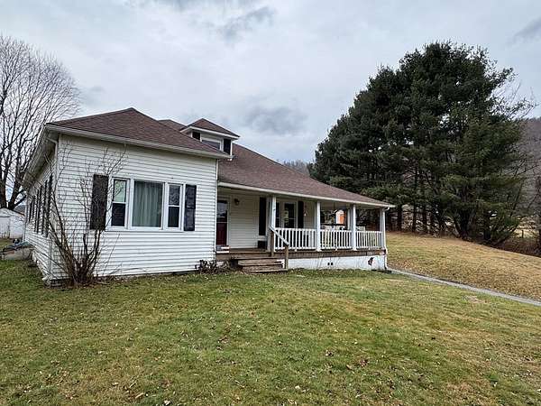 Built in 1890, this home has seen so much, but she has a lot of life left in her! Sitting atop a small knoll, taking in views of the valley both in front and behind, this lovely home is waiting for its next owners. Driving up, buyers will notice the covered front porch-sit with a cup of coffee or tea, chat with friends and family, read a book or to watch the wildlife come and go. A large back yard welcomes fun and games, gardening, or hanging out by the fire pit. A hot tub, above ground pool and children's playset will convey with the property and you can join in the fun or simply observe from the covered back deck. The views are stunning and not to be missed. Inside, this farmhouse takes you back to a simpler time, but with the basic comforts we have come to enjoy. The large center foyer leads off to bedrooms and bathrooms on either side, as well as stairs to the attic space. While the attic has a lower ceiling height, it can still accommodate loads of storage or even an office or craft area with dormer windows allowing for a lovely light. Lots of space, high ceilings, newer roof, windows and heat pump. Come see because you're curious, stay because it feels like home.