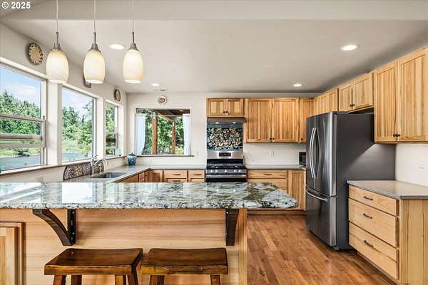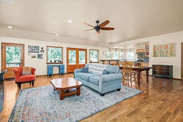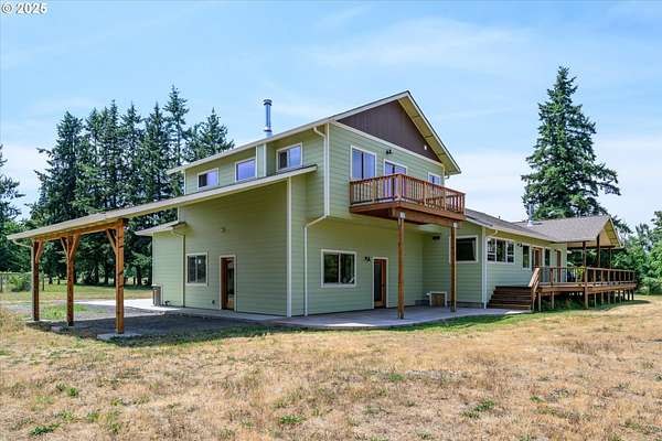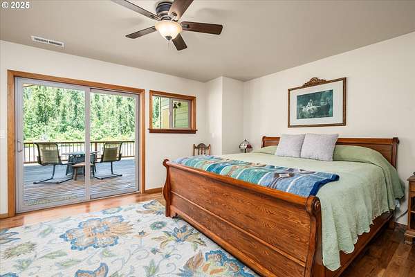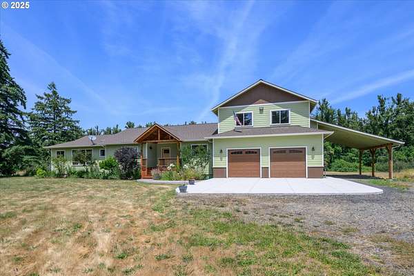 New Price Improvement! Experience the ultimate in riverfront living on 3.31 private acres with direct river access and breathtaking, unobstructed views. This custom-built home offers 2,930 square feet of thoughtfully designed living space, featuring 4 bedrooms and 3.5 baths. The master suite is a true retreat, complete with a private office for work or relaxation, and a slider opening to a covered deck. A sunroom bathes the home in natural light, while the open floor plan and great room create a welcoming atmosphere for gatherings.Step outside to a spacious covered deck, where you can unwind while taking in the ever-changing riverfront scenery. The home's location offers a quiet, country feel-yet is just 15-20 minutes from downtown Eugene and the University of Oregon, striking the perfect balance between seclusion and convenience.A standout feature is the 724-square-foot upper-level suite-ideal as a second master, guest suite, family room, home office, or for multi-generational living. This versatile space includes a full bath, a private balcony with river and mountain views, and both interior and exterior access for added privacy and flexibility.Additional amenities include an attached carport for extra parking, RV, or boat storage; a large fenced garden with raised beds; a covered patio; and an oversized garage with built-ins. An extra shop with electricity provides even more space for hobbies or storage.You'll love living in the best of both worlds with serene riverfront living and easy access to the areas vibrant community.