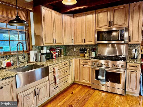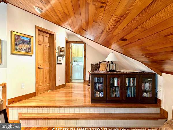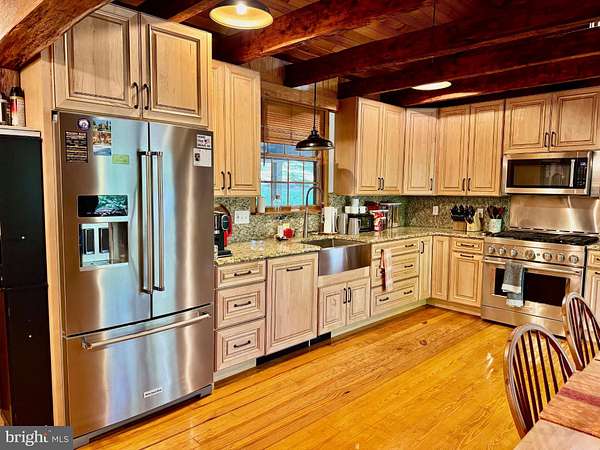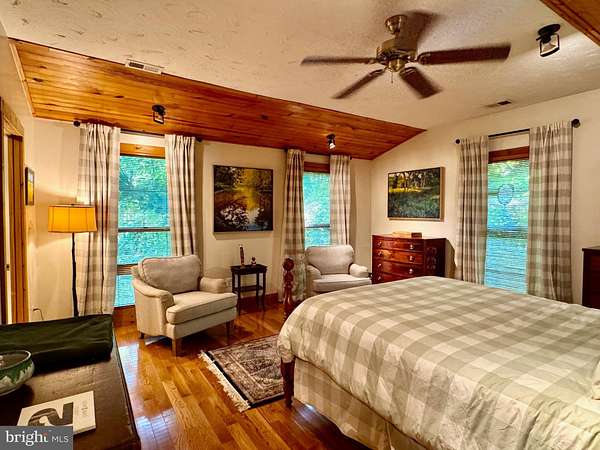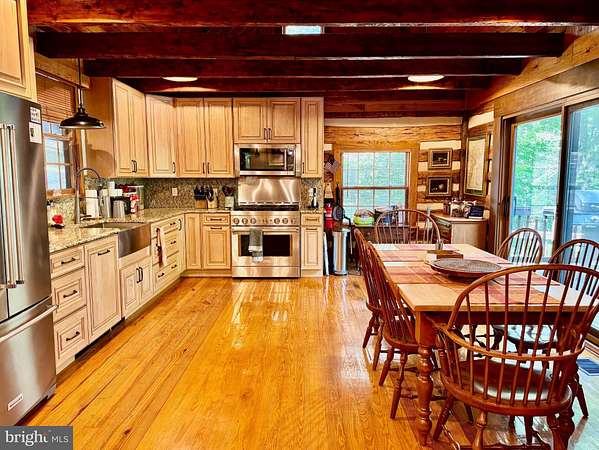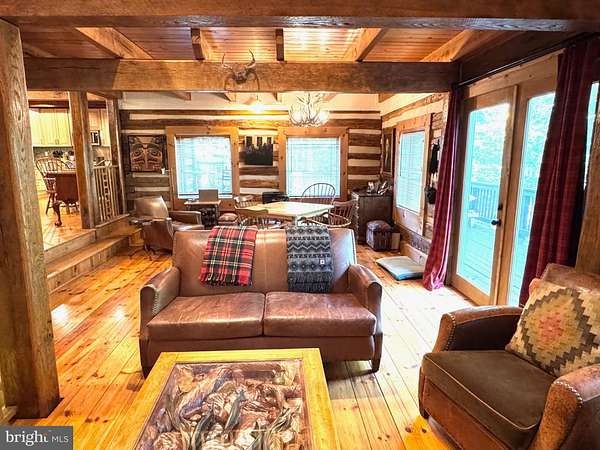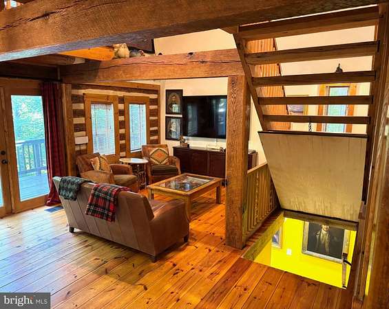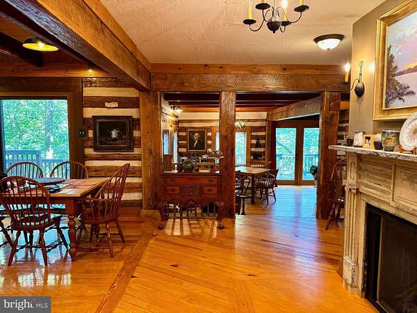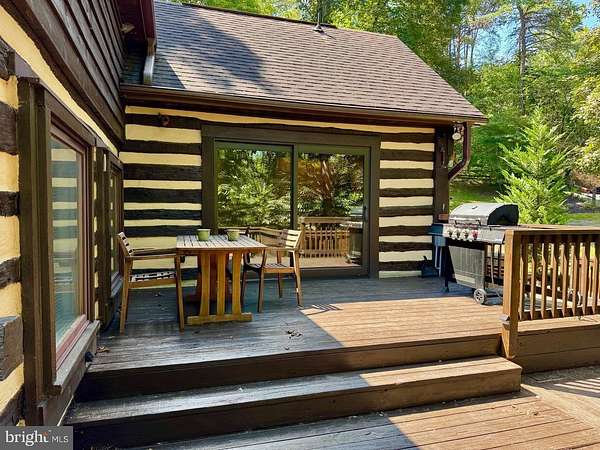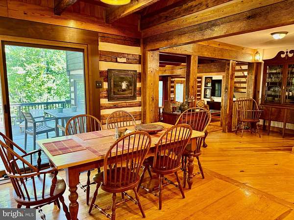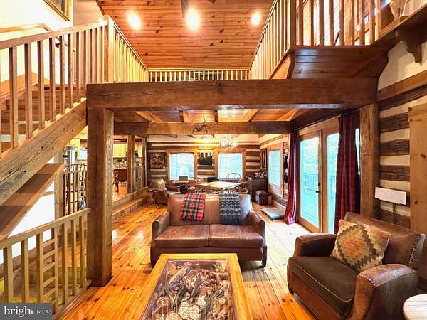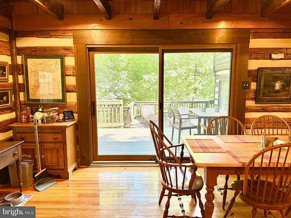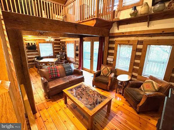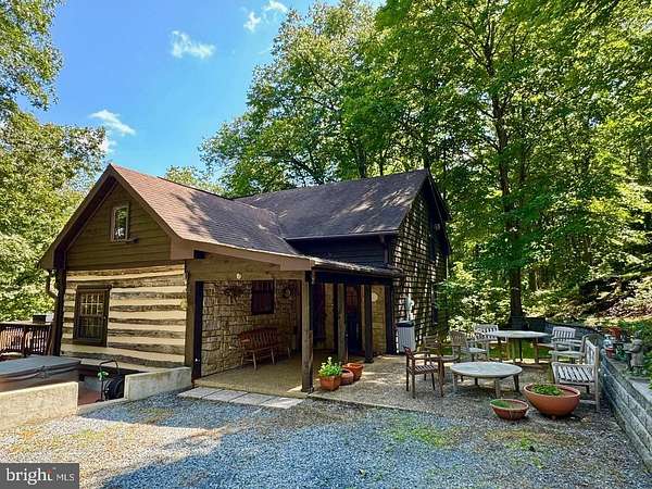 Nestled on a sprawling 5-acre lot, this exquisite log home embodies the perfect blend of rustic charm and modern luxury. Built in 2002, the property showcases exceptional craftsmanship with its stunning log and wood siding, creating a warm and inviting exterior that harmonizes beautifully with the surrounding natural landscape. Soak in the tranquil views of the lush landscape and trees along with the calmness of Cedar Creek nearby. <p> Once inside, you are greeted by an open floor plan that is accentuated by an elegant gas fireplace, exposed beams, extensive woodworking, and rich hardwood flooring that radiates warmth and comfort and enhances the home's character. The numerous large windows (including the oversized Pella sliding glass door in the Kitchen) offer picturesque views of the scenic backdrop. The Gourmet Kitchen is a culinary enthusiast's dream - completely updated in 2022 it is equipped with Kitchen Aid stainless steel appliances (a 36-inch 6-burner gas oven/range, built-in microwave, and refrigerator). Upgraded granite countertops, Schuler maple cabinetry, a deep Krauss stainless sink and ample table space make this Kitchen not only functional but also a delightful gathering spot. The Dining Room opens up to the 2-story Family Room and provides access to the spacious back deck. Two Bedrooms and a Full Bathroom are also conveniently located on the main level. <p> Retreating to the upper level, you will find the spacious Primary Bedroom which features a walk-in closet and a freshly painted en-suite Bathroom complete with a soaking tub and a separate shower, providing a spa-like experience at home. To complete the upstairs you'll also find a convenient upper-level laundry room plus a loft with pine ceilings that overlooks the main level. <p> Heading down to the lower level you will find the partially finished walk-out basement that offers a cozy recreation or study area - whichever you prefer! The vented Vermont Castings gas-stove insert adds a wonderfully pleasant feel to this finished space. The expansive unfinished utility room provides additional potential for customization, whether for storage or even more recreational use. Recent utility updates include - Rinnai on-demand tankless water heating system (2021), Lancaster water softener treatment system (Dec 2024), water pressure tank (2025), and Carrier two-zoned forced air heating & cooling system (2022). Starlink is used for excellent networking, internet, TV and streaming services. <p> Back to the main level, step outside from multiple locations onto the expansive wrap-around deck, where you can unwind while enjoying the seclusion and tranquility along with sounds of the nearby Cedar Creek. The property boasts approximately 240 feet of private creek frontage, offering exclusive access to the soothing waters and a picturesque setting to enjoy the natural beauty that surrounds you. The nicely designed stone retaining walls enhance the outdoor space, creating a perfect backdrop for entertaining or simply enjoying the peaceful surroundings. This log home is not just a residence; it is a sanctuary that captures the essence of nature while providing all the modern amenities for a comfortable lifestyle with no HOA. Experience the unique architectural features and unparalleled craftsmanship that make this warm and inviting property truly one-of-a-kind.
