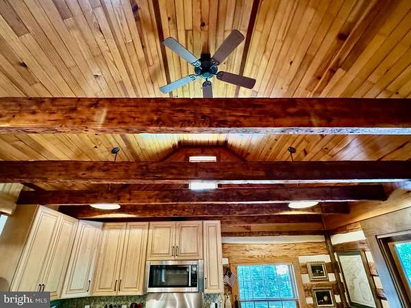 - Breakfast Area, Ceiling Fan(s), Combination Dining/Living, Eat-In Kitchen, Entry Level Bedroom, Exposed Beams, Open Floor Plan, Primary Bath(s), Recessed Lighting, Soaking Tub Bathroom, Stall Shower Bathroom, Table Space Kitchen, Upgraded Countertops, Wainscotting, Walk-In Closet(s), Water Treat System, Wood Floors