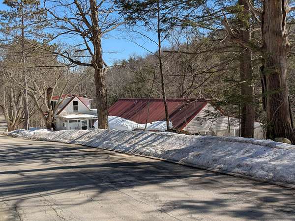 Investors take note. This two bedroom one bath home with a detached garage and shop building is being offered for the first time in over half a century and it's being offered for sale with both the home AND the abutting lot. Each lot is about two acres and you'll find the remnants of an old mill along the brook's edge down below the house and lot. Mill Brook runs along the bottom edge of the lots and there are some beautiful waterfalls and the old sluice way and a cool island. Home is currently heated via a wood stove and a propane monitor, but there is a (non functioning) Forced Hot Air oil burning furnace there. Home was continually occupied for almost 60 years up until a few months ago. This home is to be sold AS IS. Buyers and their agents urged to do all due diligence necessary in regards to the property as there appear to be a few nice building sites on each lot, but no guarantees are made as there is no soil or test pit data available. What is being offered is Lot A-65 AND lot A 65-1, totaling 4.1 acres according to the town. One other abutting lot owned by the same family is also being offered separately (Lot A-66, 1.1 acres) in a separate listing, and it is just above this lot. Shown by appointment, someone is staying there for now. Do NOT pull in without an appointment.