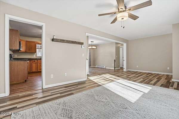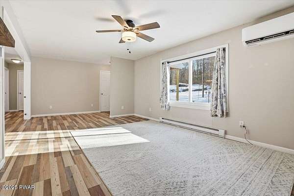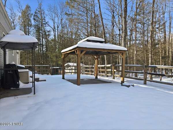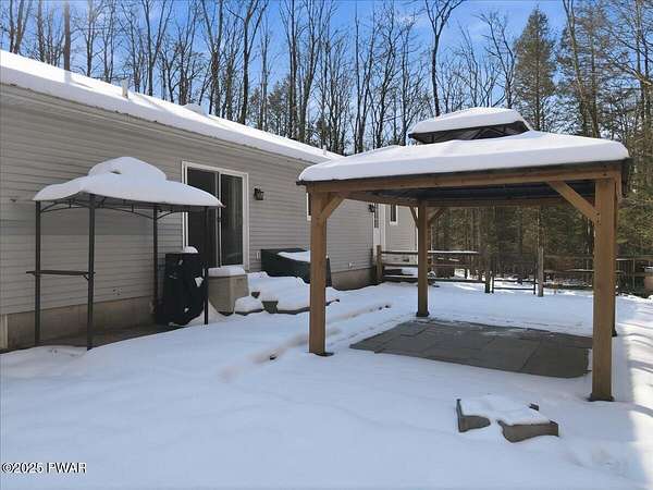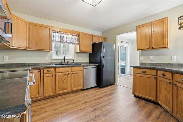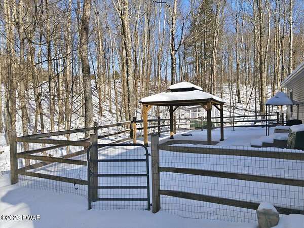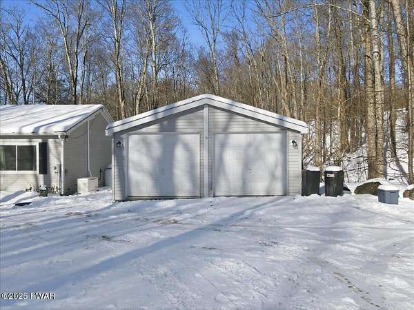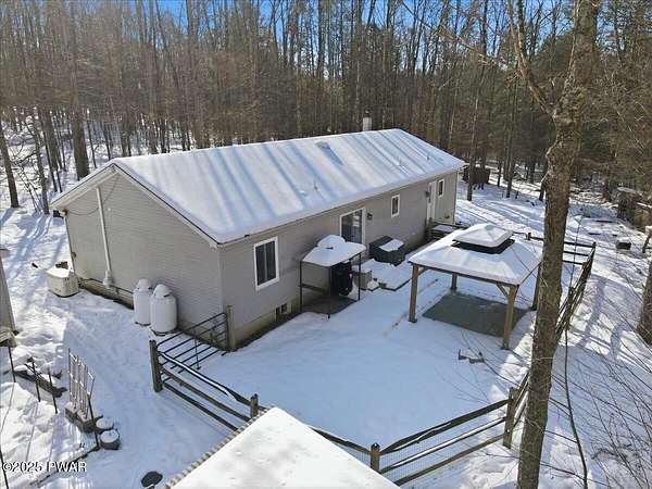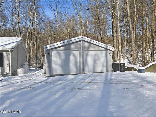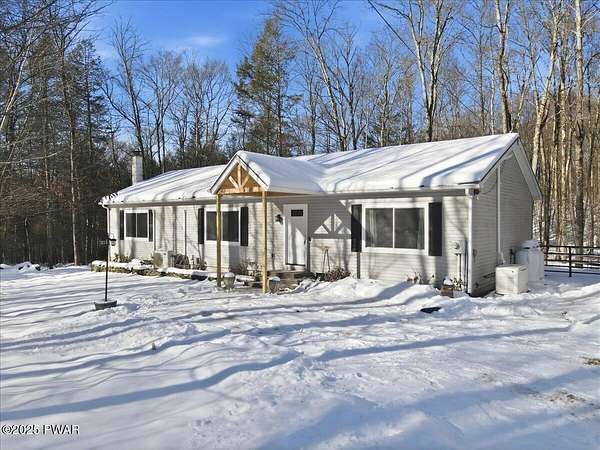 Tucked away on 2.57 private, wooded acres, this beautifully maintained 3-bedroom, 2-bath home offers peaceful nights, breathtaking starry skies, and frequent wildlife sightings--your own quiet retreat with so many updates already in place. This home has been thoughtfully upgraded throughout, including a new roof, new windows, new driveway, a new front portico, and a whole-house Generac generator with two owned 120-gallon propane tanks. Comfort is enhanced with 2-year-old mini-split heating and cooling in the primary bedroom and living room, along with a wood-burning forced-air furnace for cozy winters. Inside, you'll find new Pergo flooring in the kitchen, upgraded lighting, bluestone countertops, and a 2-year-old KitchenAid dishwasher and stove. Both bathrooms have been refreshed with new showers, sinks, and vanities, while the primary suite features upgraded carpeting in the bedroom and a large soaking tub to complete the primary bath. The main-floor laundry room adds everyday convenience and easy one-level-living! Outdoor entertaining shines here with bluestone steps front and rear, a bluestone patio with large pergola, fenced backyard, garden and greenhouse, plus a new two-car detached garage, and woodshed. The large basement offers a bar area and separate storage room--ready to be finished for entertaining or hobby space. Located in northern Wayne County; known for privacy with easy access to outdoor recreation--hiking trails, ATV riding, game lands, lakes for fishing and boating, and charming shops. Enjoy nearby shopping and dining in Honesdale, plus skiing just 35 minutes to Elk Mountain and 50 minutes to Montage Mountain. If you can picture yourself enjoying scenic days and relaxing by the firepit under a sky full of stars--without worrying about major upgrades--this move-in-ready home is the one you've been waiting for.