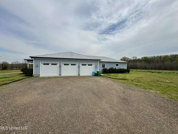 This exceptional 2.1+/- acre property in Sunflower County offers the perfect blend of modern comfort and rural charm. The 3,800+/- sq. ft. home, built in 2020, features an open floor plan with a seamless flow between the living and dining areas. The large kitchen features granite countertops, abundant cabinetry, and a walk-in pantry that doubles as a tornado-safe room with 10-inch poured concrete walls. The east end of the home includes three bedrooms and three baths, providing ample space for family and guests. The primary suite on the southwest side offers a luxurious retreat with a walk-in tile shower, jacuzzi tub, separate vanities, and two spacious walk-in closets with built-in shelving. Off the entrance from the three-car garage, you'll find a large laundry room and a half bath, a storage room, and two top-of-the-line tankless water heaters. Outdoor living is just as inviting, with a large front patio for enjoying sunsets and a screened-in back patio for peaceful sunrise views. The property also includes a 25x30 shed with a roll-up door for additional storage.